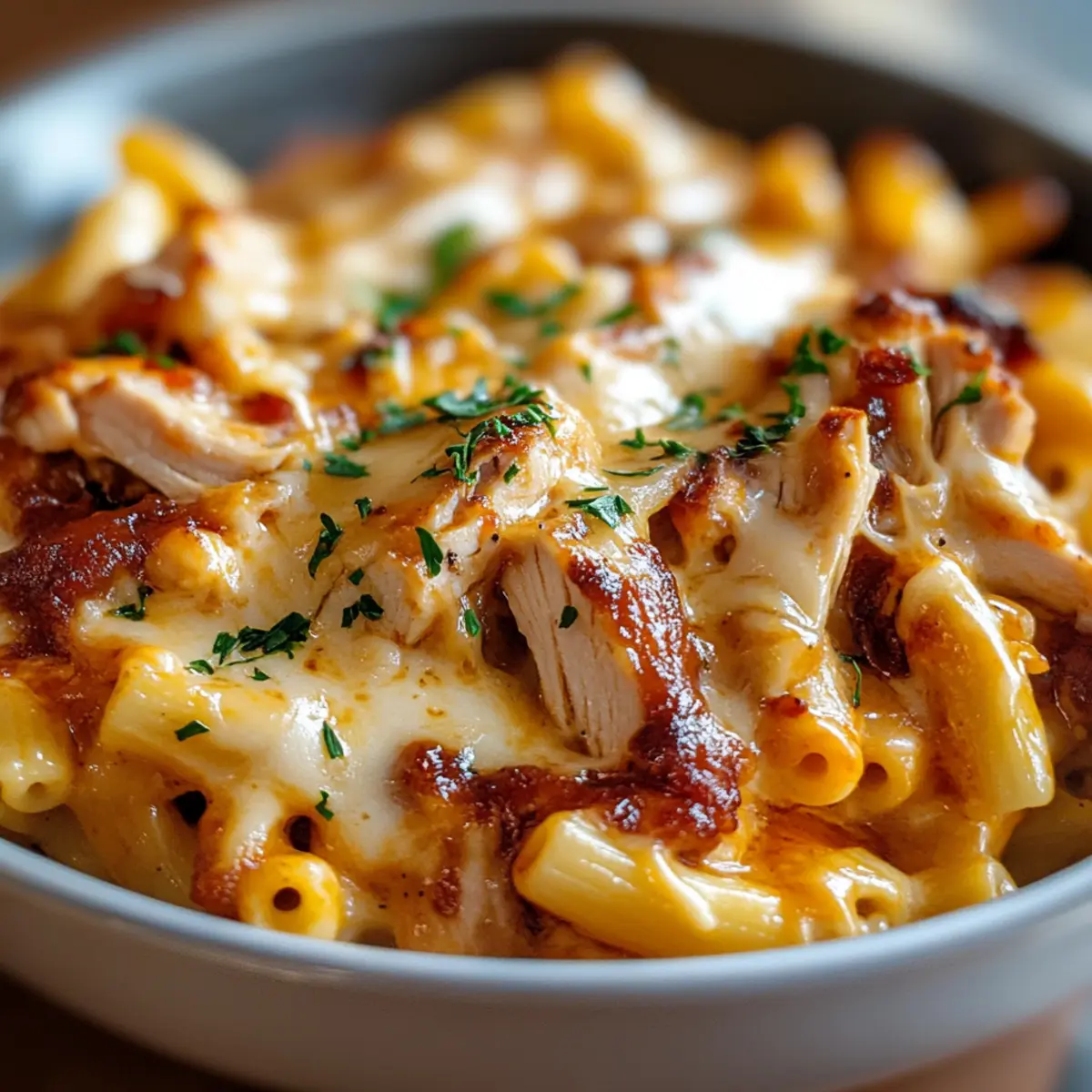 Comfort in Every Bite: The combination of gooey cheese and tender chicken creates a comforting experience that warms your soul, reminiscent of classic BBQ flavors.