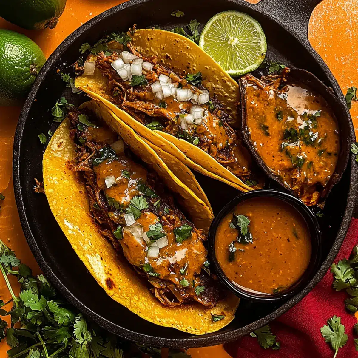 Plate your crispy tacos with a small bowl of the rich consomé for dipping. Top your Birria Tacos with fresh cilantro and pico de gallo for a vibrant finish. These delightful morsels offer a wonderful mix of crunch and flavor, creating an unforgettable taco night experience!