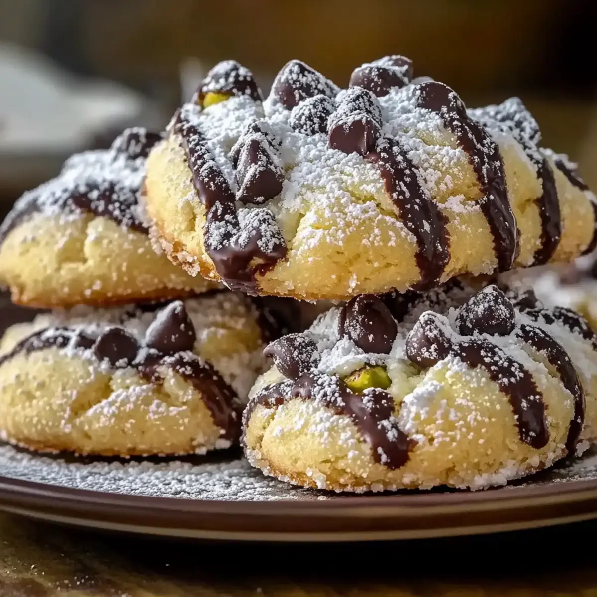 Once baked, let the cookies cool on the baking sheets for about 5 minutes before transferring them to a wire rack. Allow them to cool completely, then dust with powdered sugar for an elegant finish. The sweet contrast against the crispy shells creates a beautiful presentation for your Cannoli Cookies.