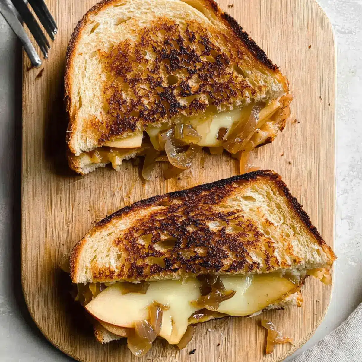 Comforting, gourmet twist: The Caramelized Onion & Apple Grilled Cheese Sandwich elevates a beloved classic, making it perfect for any food lover.