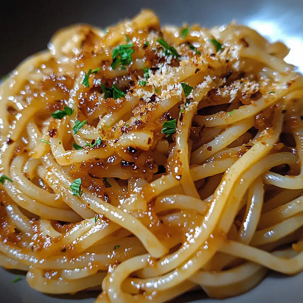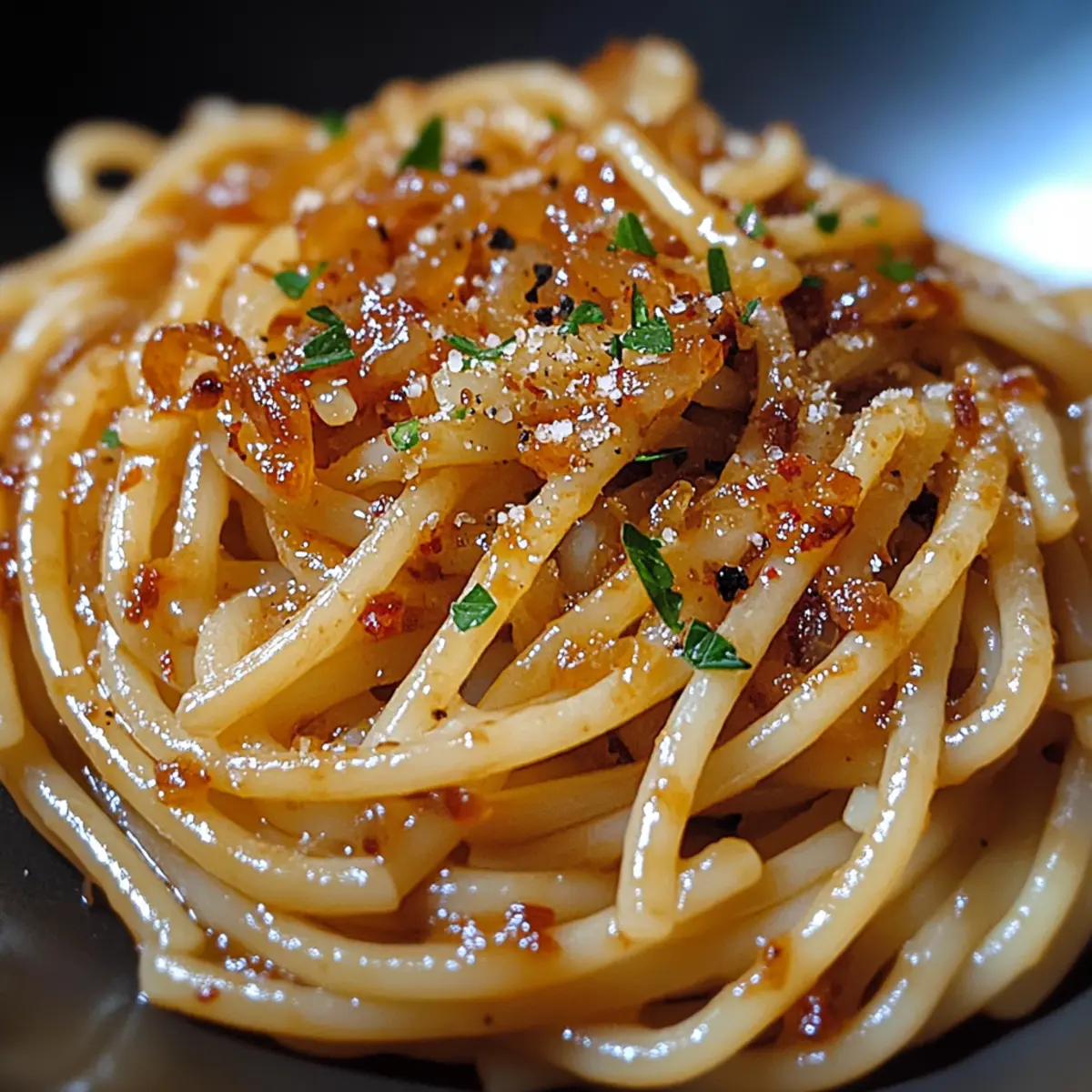 Late-night cravings can lead to the most delightful kitchen experiments. One such evening, I stumbled upon the perfect union of flavors that transformed my ordinary pasta into an extraordinary feast—Caramelized Onion Pasta with Chili Oil. The intricate sweetness of slow-cooked onions mingled beautifully with the spicy kick of chili oil, creating a dish that feels both soothing and exciting. This recipe is not only customizable to fit your taste but also a fantastic option for meal prep, making it ideal for busy weeknights. Whether you’re a seasoned chef or just getting your kitchen feet wet, this comforting yet zesty pasta will surely satisfy your hunger and your palate. What’s your favorite twist on a classic pasta dish?