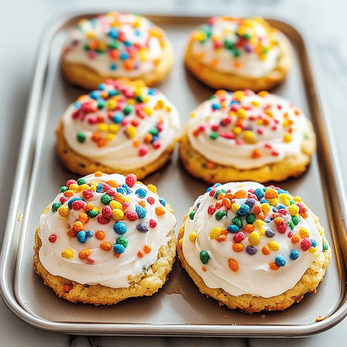 Frosted Fruity Pebbles Cookies that Spark Childhood Joy