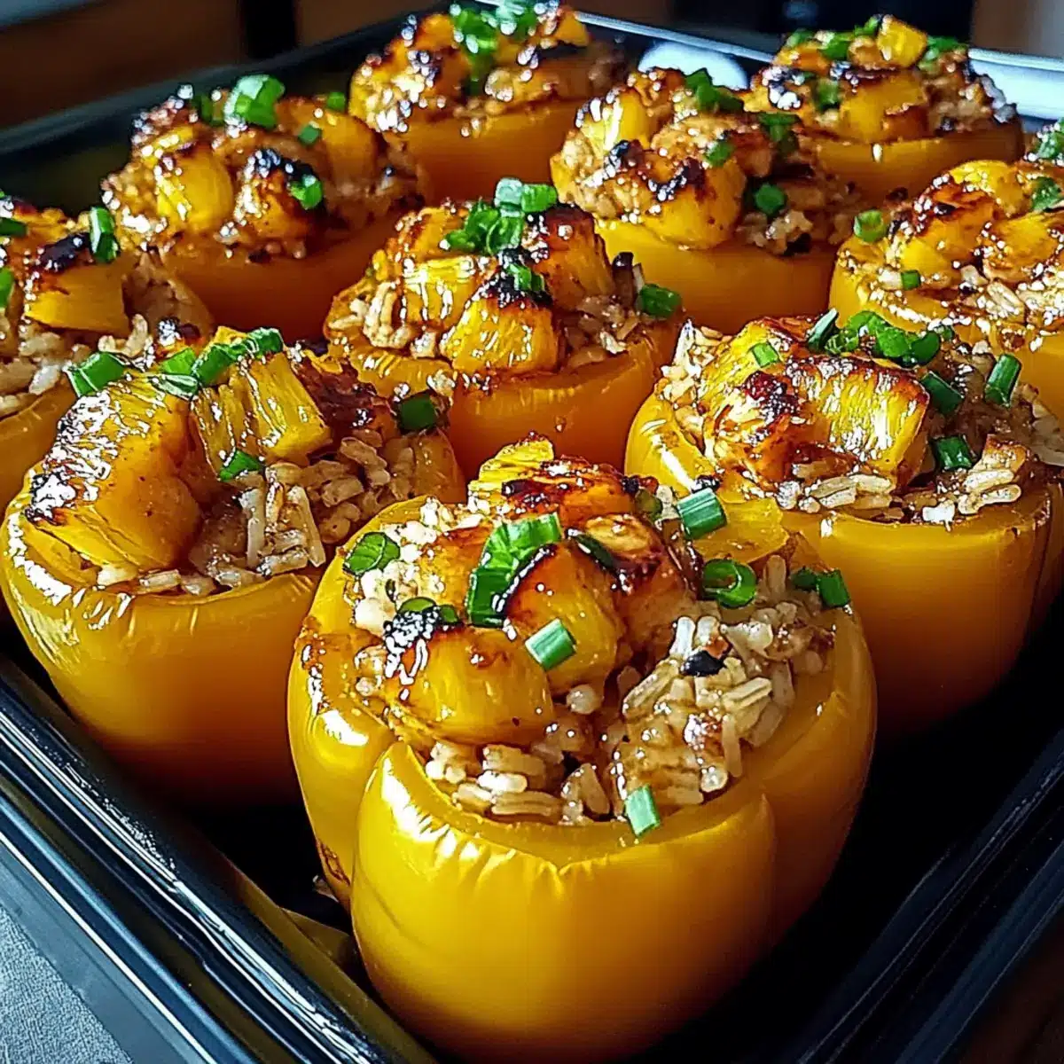 Teriyaki Pineapple Chicken and Rice Stuffed Peppers Delight