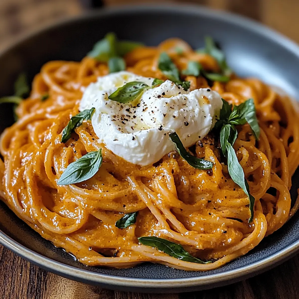 Creamy Red Pepper Pasta with Burrata & Fresh Herbs Bliss