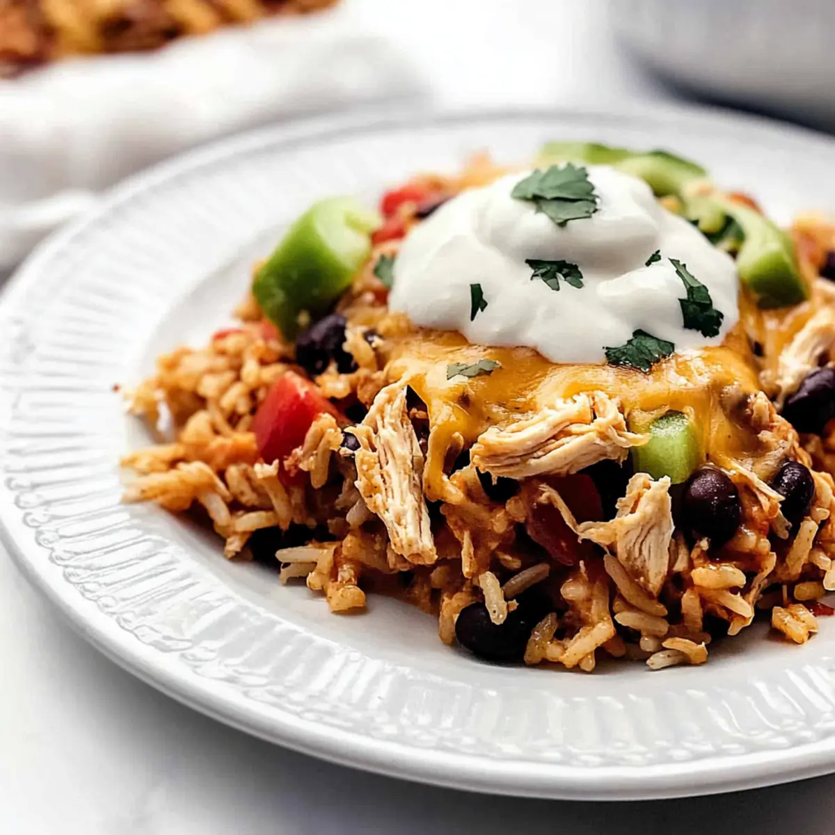 Allow the casserole to cool for a few minutes before serving. Garnish with fresh cilantro, chopped green onion, salsa, and avocado slices if desired, making your Chicken Burrito Casserole even more flavorful and appealing. Prepare for delighted faces at the dinner table as everyone digs in!