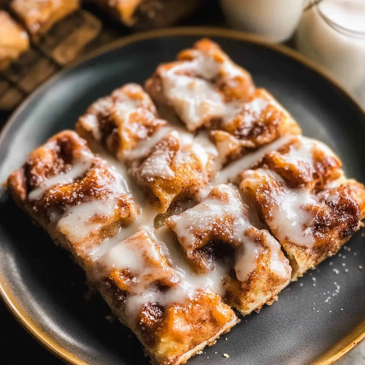 To prepare the icing, whisk together 1 cup of powdered sugar, 2 tablespoons of milk, and 1 teaspoon of vanilla extract in a bowl until smooth. Adjust the consistency if necessary, then drizzle this creamy icing over your warm Cinnamon Focaccia. Slice into pieces and serve fresh for a delightful treat!