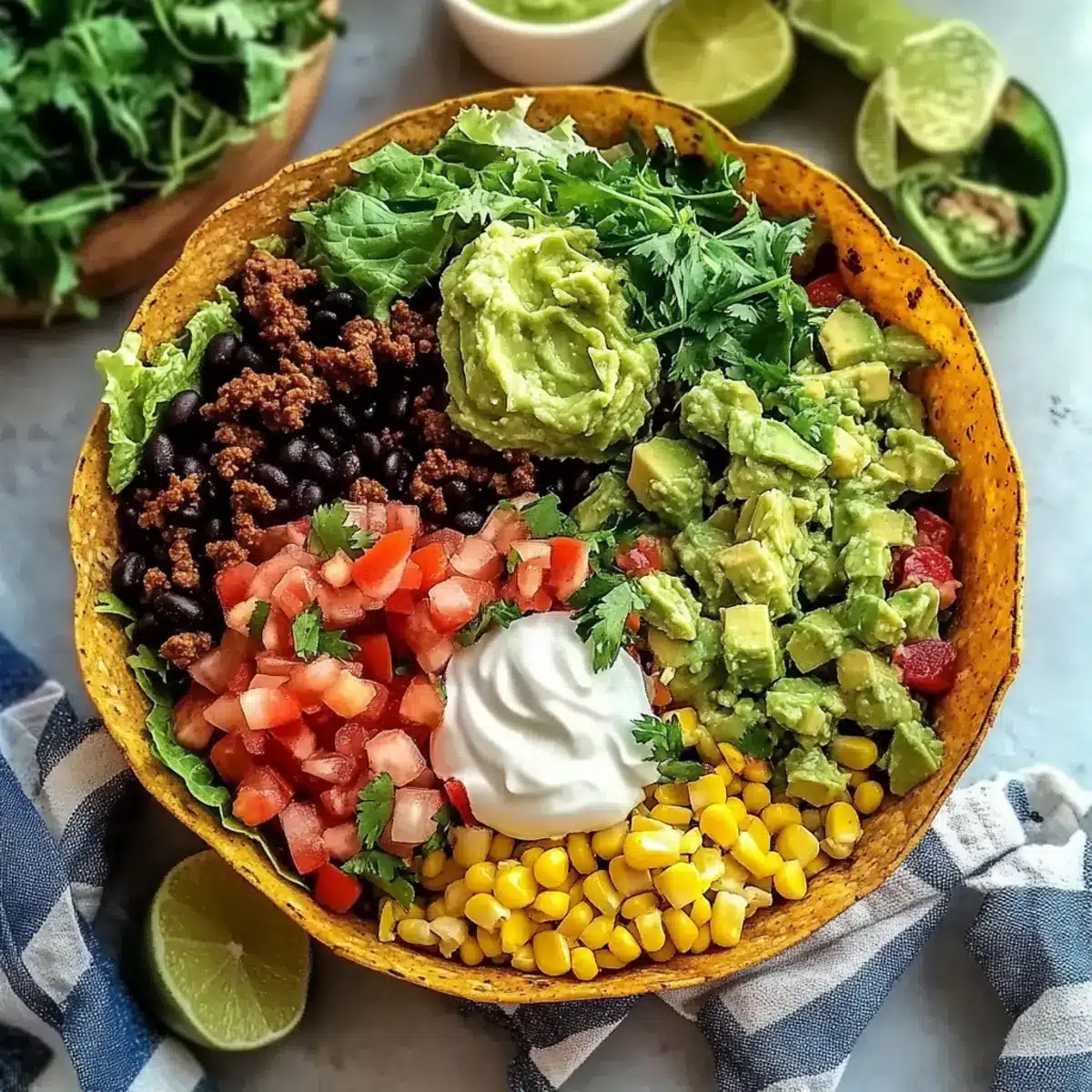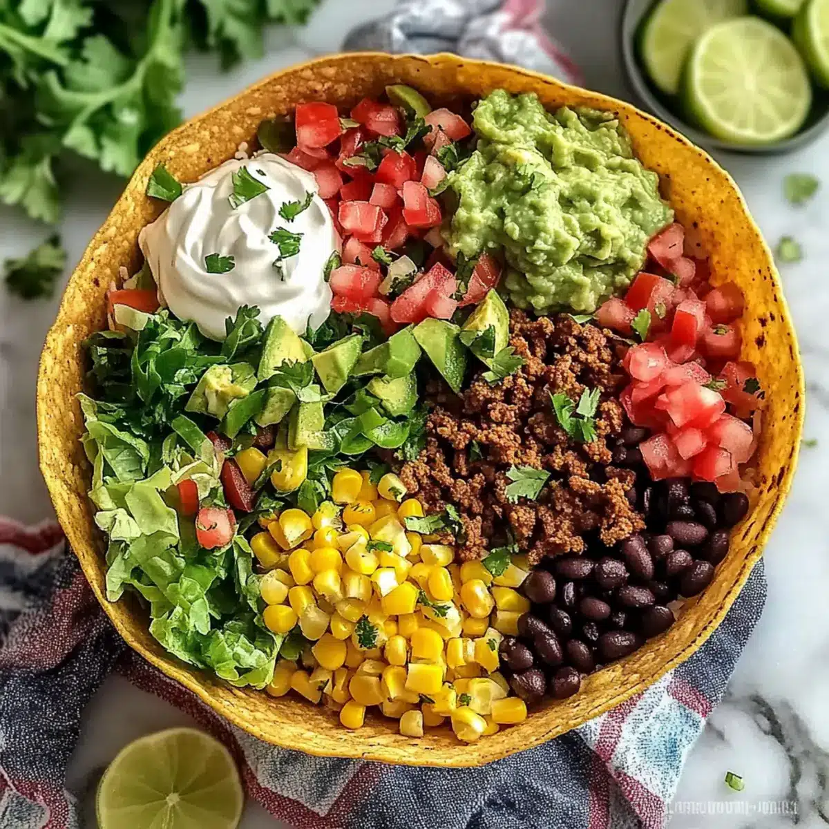“Did you hear that?” I could almost hear the excitement in the kitchen as my family gathered around the table, eager to dive into a build-your-own taco bowl night. Complete Taco Bowls are more than just a meal; they transform ordinary dinner into a delightful, interactive experience. Each crispy tortilla bowl cradles a symphony of seasoned rice, savory beef, and charred corn, ready to be customized with a variety of fresh toppings to suit every palate. Not only are these taco bowls family-friendly, but they also enable everyone to get creative in the kitchen. Plus, they’re perfect for meal prep, allowing for easy assembly ahead of time. With flavors that please both kids and adults, it’s a surefire way to say goodbye to fast food. What toppings will you choose to make your taco bowl truly your own?