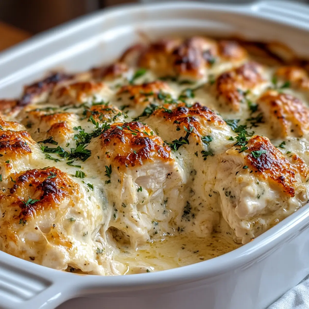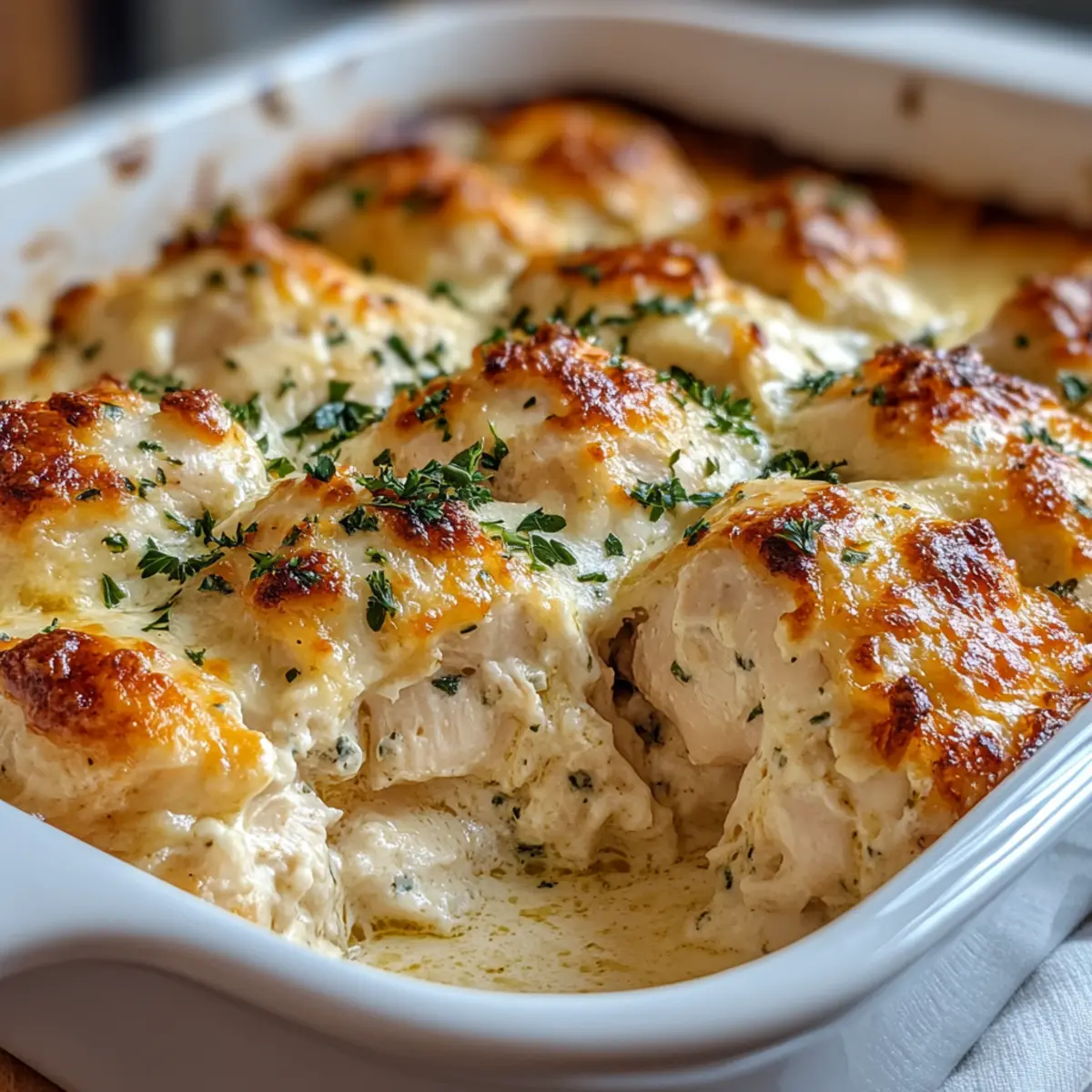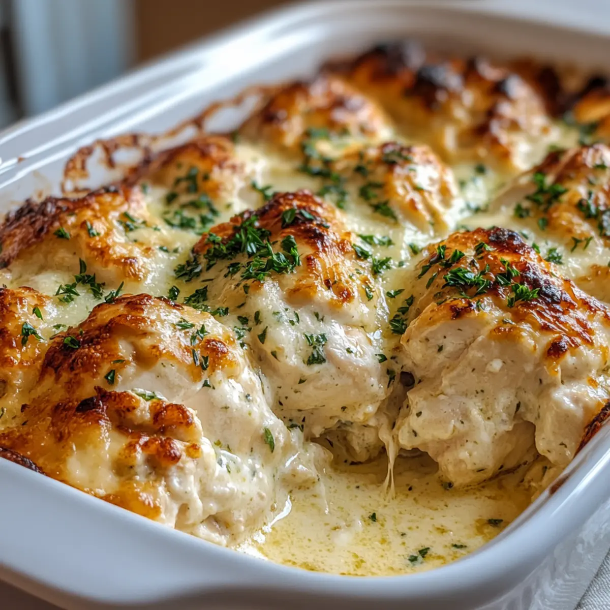 Once baked, remove the dish from the oven and allow it to rest for 5 minutes. This resting period lets the flavors settle while making the chicken easier to handle. Before serving, sprinkle some chopped parsley or chives for a fresh touch and vibrant color that enhances your wonderful Cottage Cheese Chicken Bake.