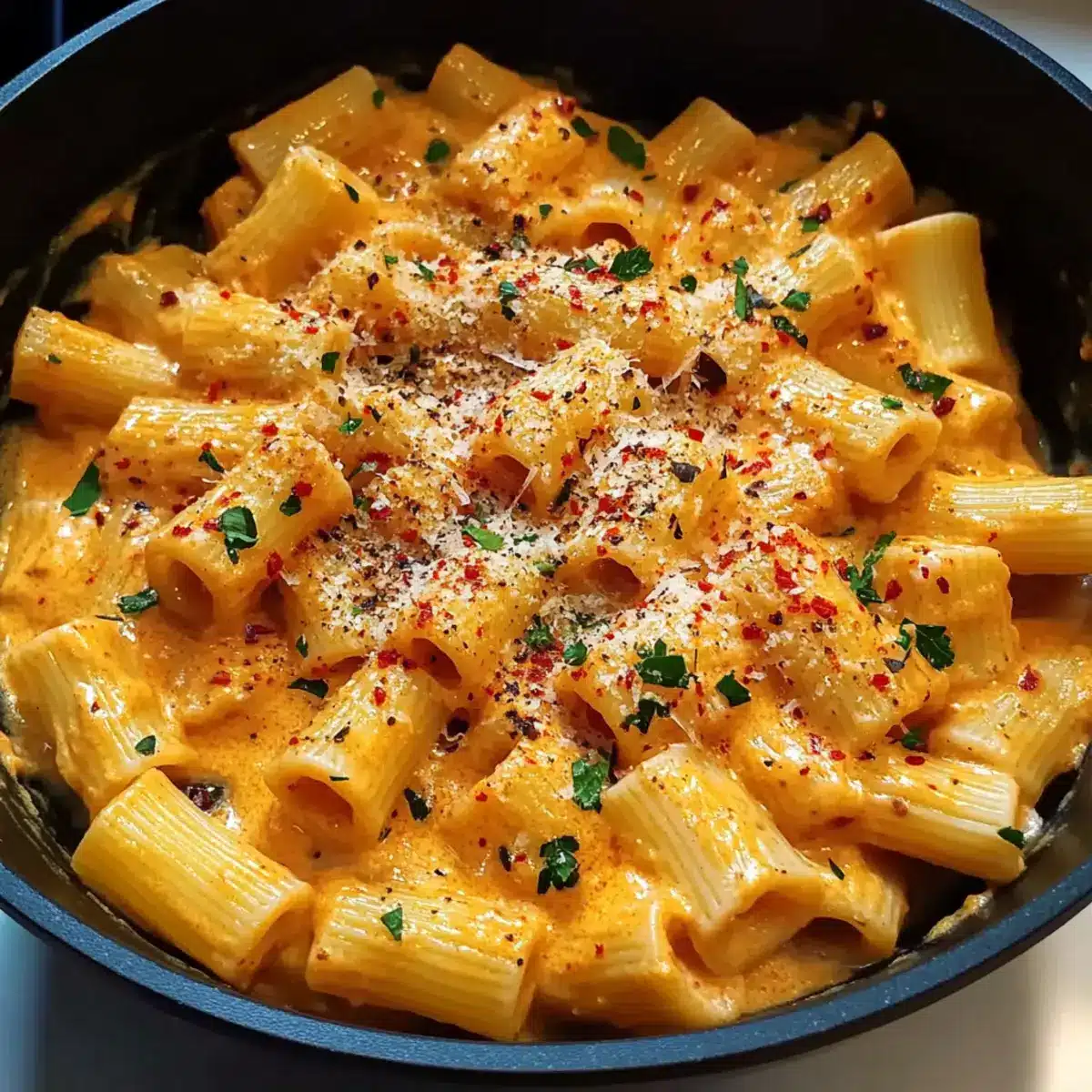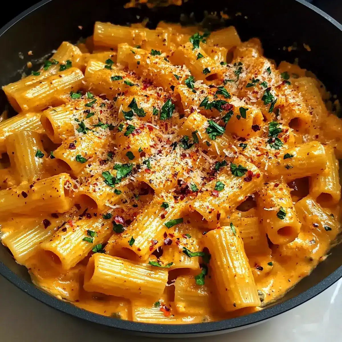 To serve your Delicious Gigi Hadid Pasta, plate it generously, then sprinkle with additional Parmesan, freshly chopped parsley, and extra red pepper flakes for a pop of color and flavor. This not only makes the dish look inviting but also enhances that creamy allure, perfect for family gatherings or a cozy dinner at home.