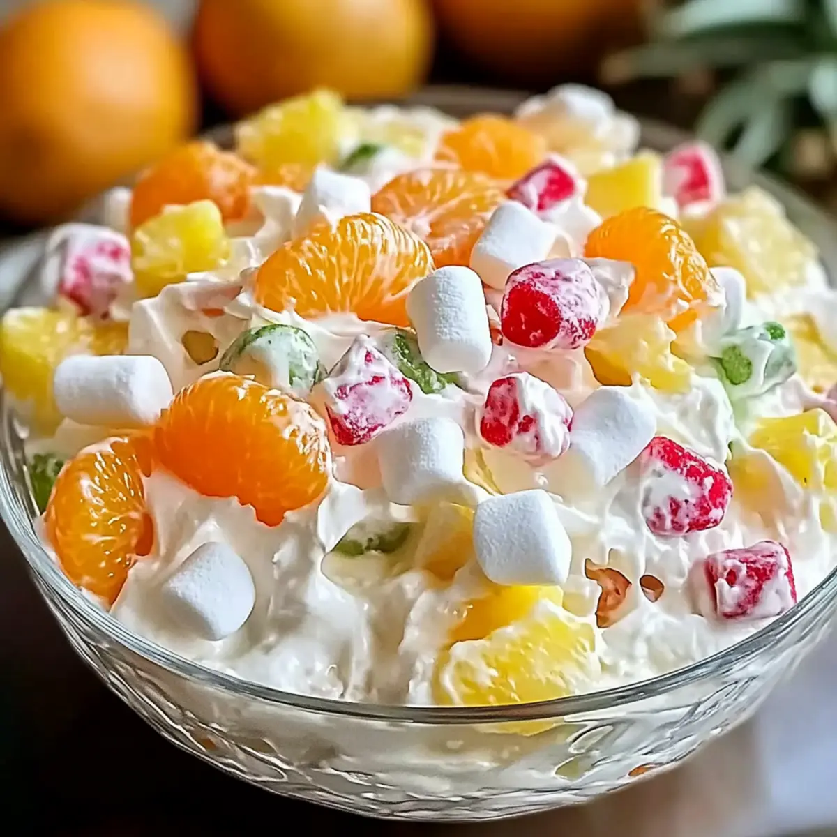 Versatile Delight: Customize your Ambrosia Salad with tropical fruits or nuts to suit various tastes—check out our variation ideas for added inspiration!