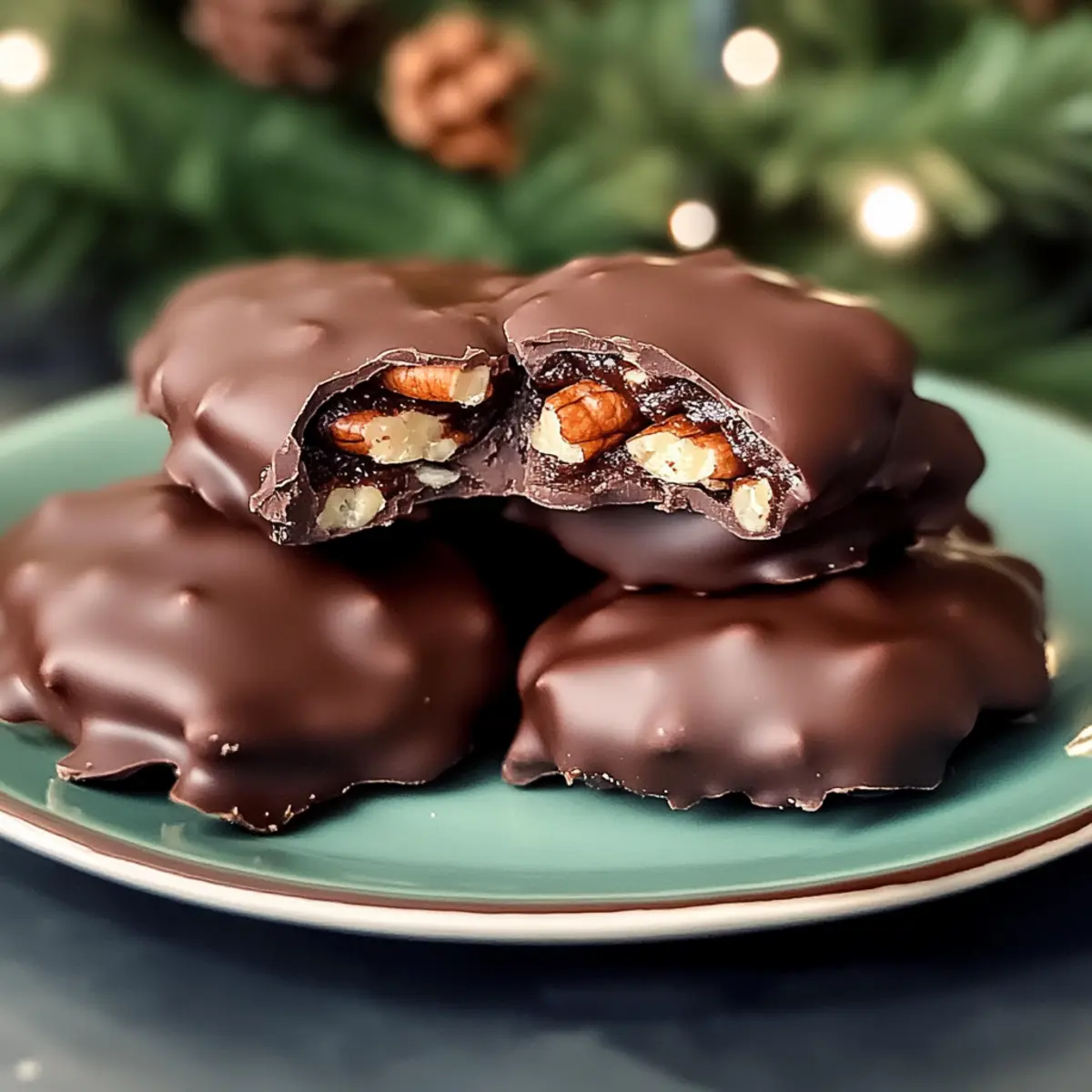 - Scoop portions of the pecan mixture and shape them into clusters. Dip each into melted chocolate.