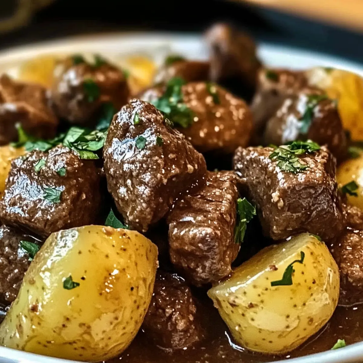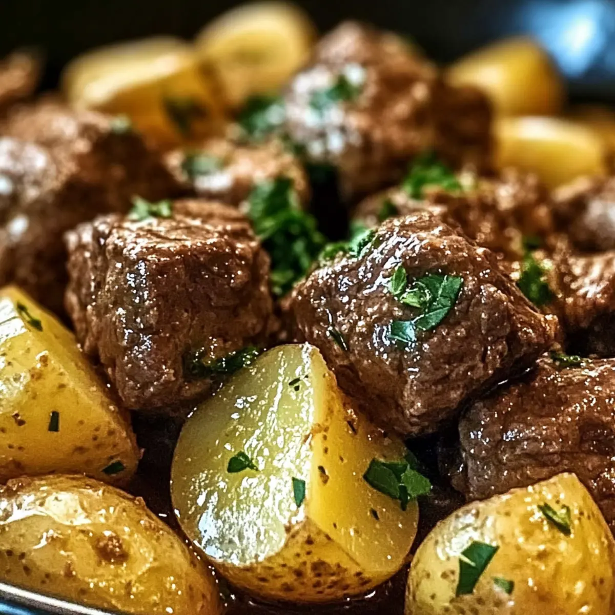 Melt-In-Your-Mouth Garlic Butter Beef Bites & Potatoes