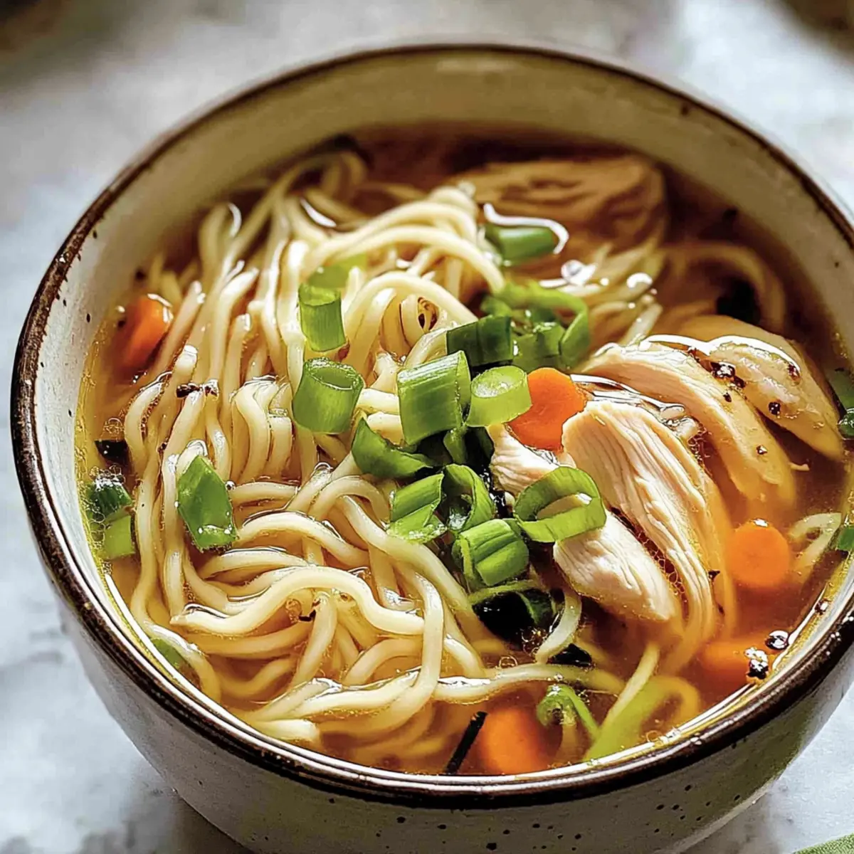On a chilly evening, nothing quite compares to the comforting embrace of a warm bowl of soup. Today, I’m excited to share my take on Aromatic Ginger Scallion Chicken Noodle Soup, a dish that brilliantly combines tender chicken, soft noodles, and a rich, flavorful broth. What I love most about this recipe is its quick preparation time—perfect for those evenings when you want something that feels like a hug in a bowl without spending hours in the kitchen. Plus, it’s a one-pot meal, making cleanup a breeze! With the warming notes of ginger and garlic mingling with the fresh bite of scallions, this soup is not only a delightful treat but also incredibly customizable. So, what vegetables will you choose to add your own touch to this heartwarming dish? Let’s dive into this cozy recipe together!