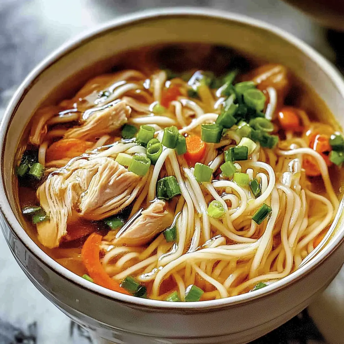 Crowd-Pleasing Flavor: With its robust broth and tender noodles, this Ginger Scallion Chicken Noodle Soup is sure to impress friends and family alike.