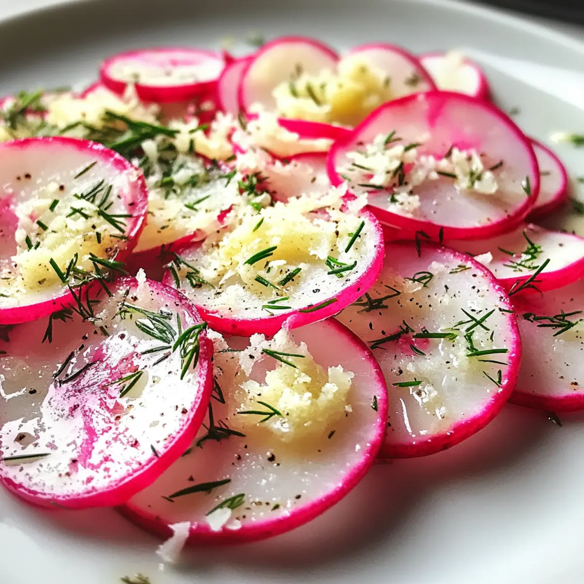 For a stunning presentation, transfer the radish salad onto a serving platter. Spread the radish slices out evenly rather than stacking them. This arrangement not only looks appealing but also ensures every bite is perfectly balanced in flavor, allowing each ingredient to shine in your Gordon Ramsay Radish Salad.