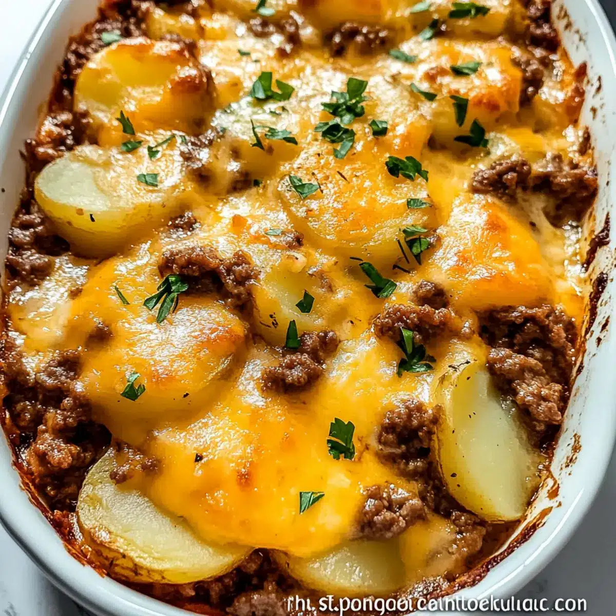 - Extra Creaminess: For a richer texture, consider adding a dollop of sour cream or cream of mushroom soup to the beef mixture before layering on the potatoes.