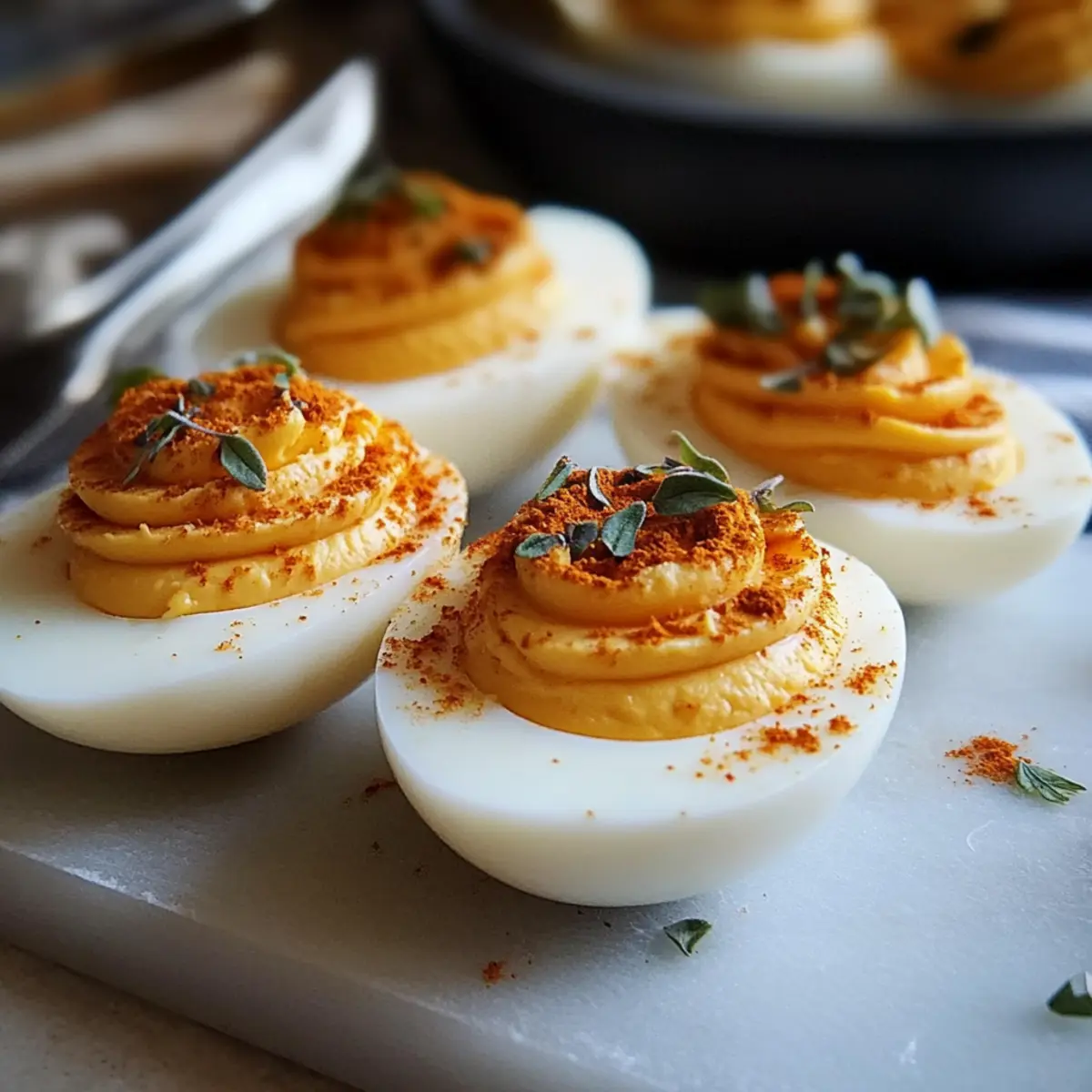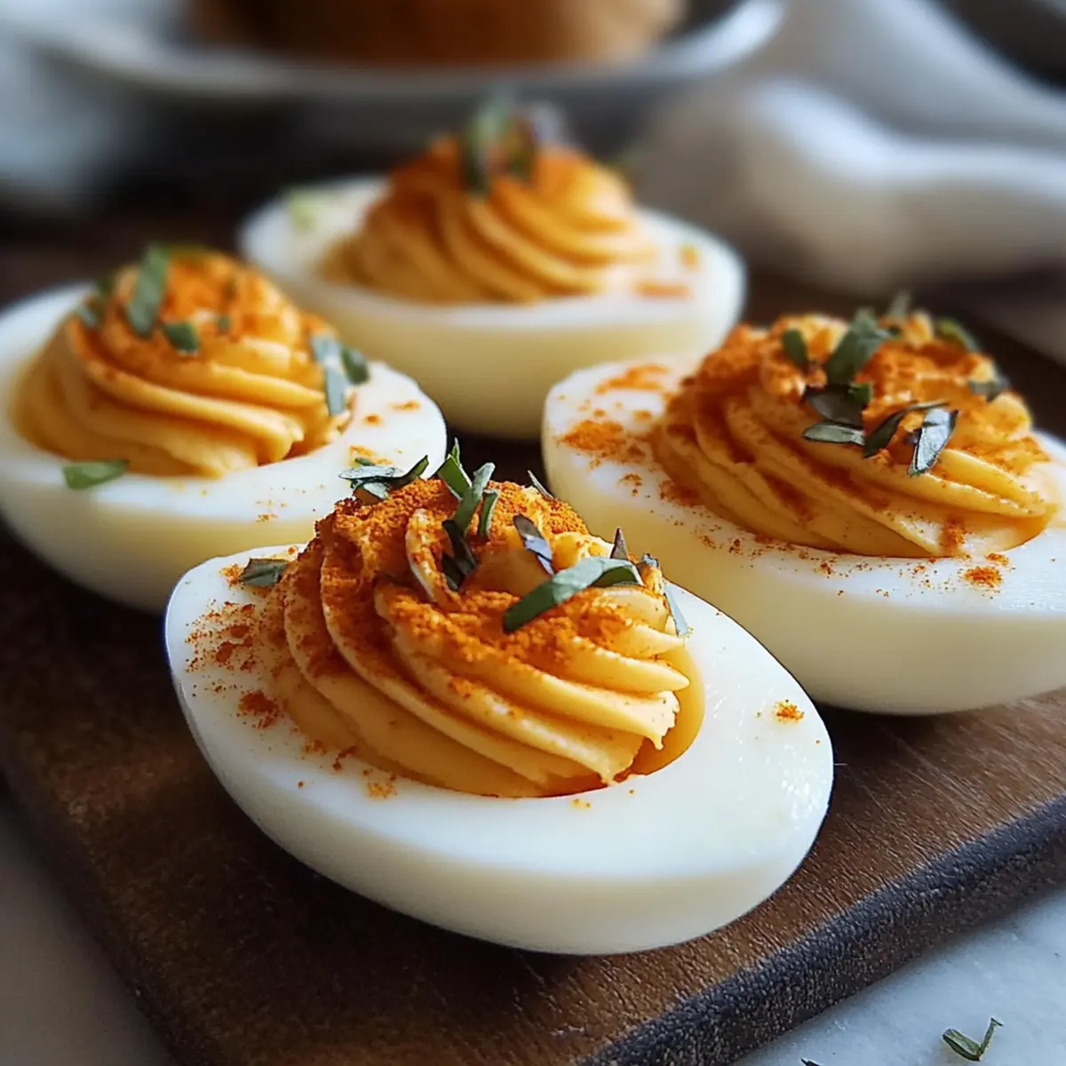 Sweet & Savory: Mix in a spoonful of pickle relish or chutney to the yolk filling for an unexpected sweet and tangy burst in every bite. It’s a delightful surprise!