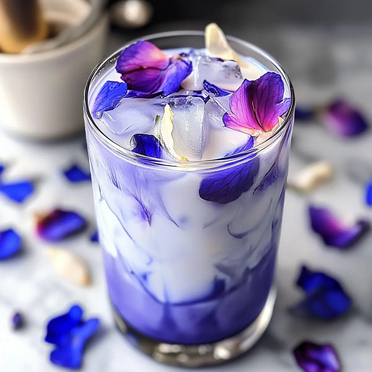 - Garnish with fresh or dried butterfly pea flowers and serve immediately, enjoying the delightful combination of flavors.