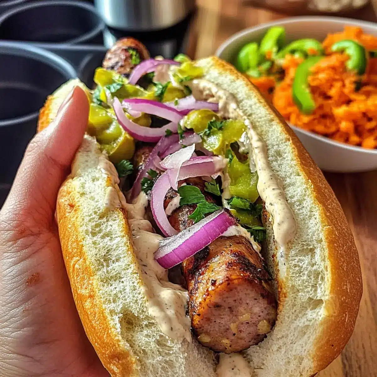 Absolutely! For the best flavor, select firm, fresh ingredients. Pick beef sausages that are fully cooked and free from blemishes. When it comes to red onions, look for ones that are firm with vibrant color—avoid those with soft spots. Peperoncini should be bright and crisp, ensuring a fresh tang in your sandwiches.