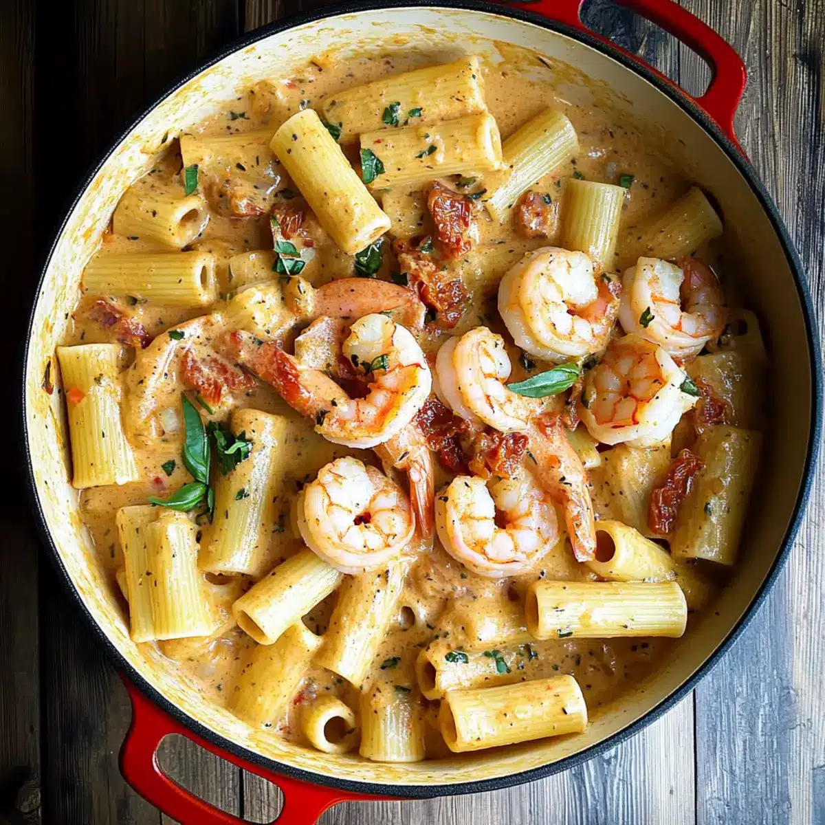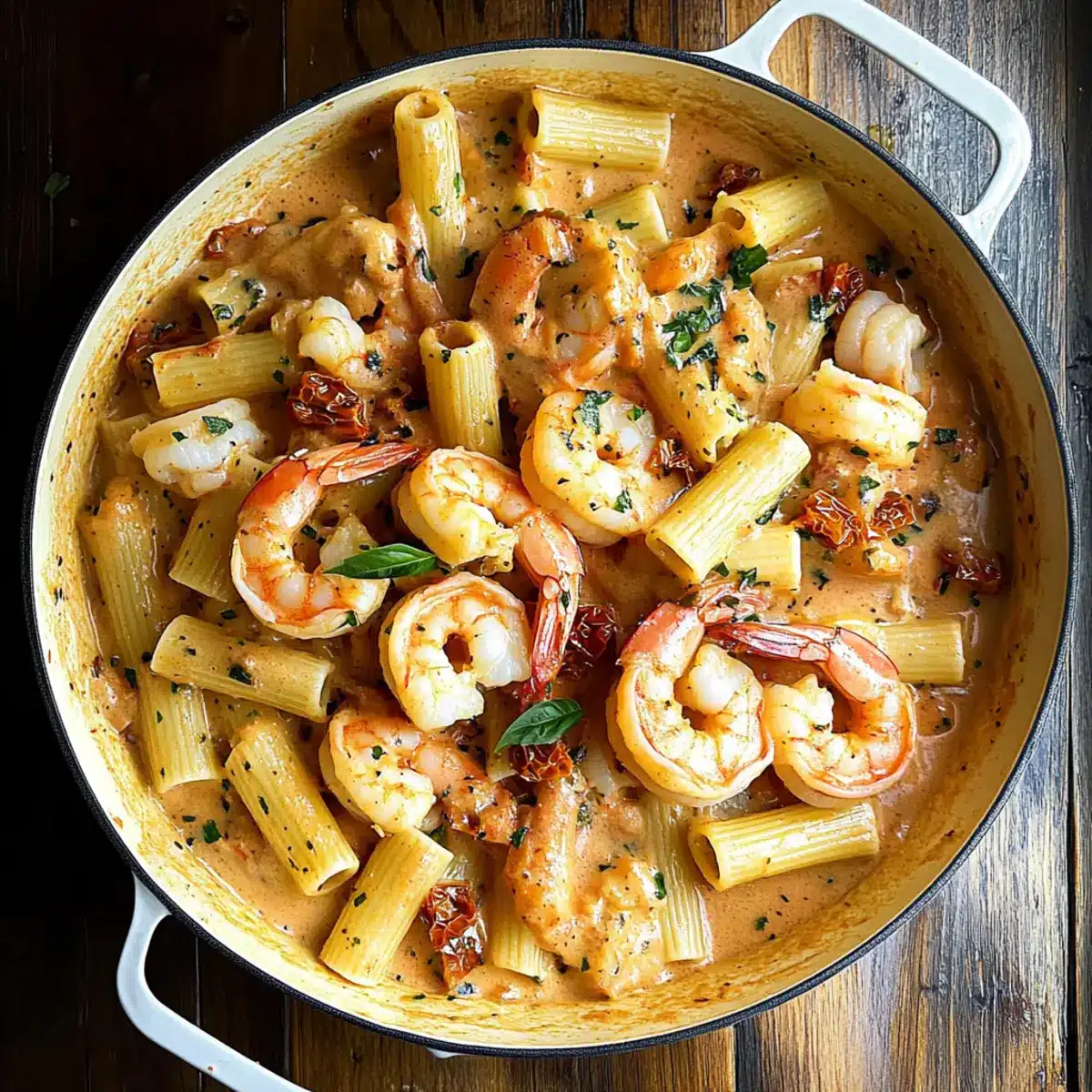 Creamy Delight: The luscious sun-dried tomato sauce envelops shrimp and pasta, delivering a rich flavor that will leave everyone asking for seconds.