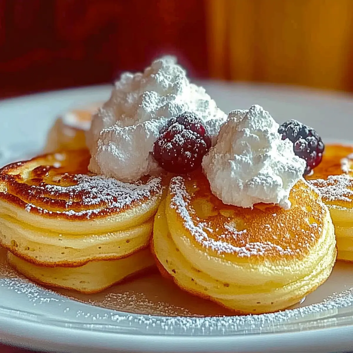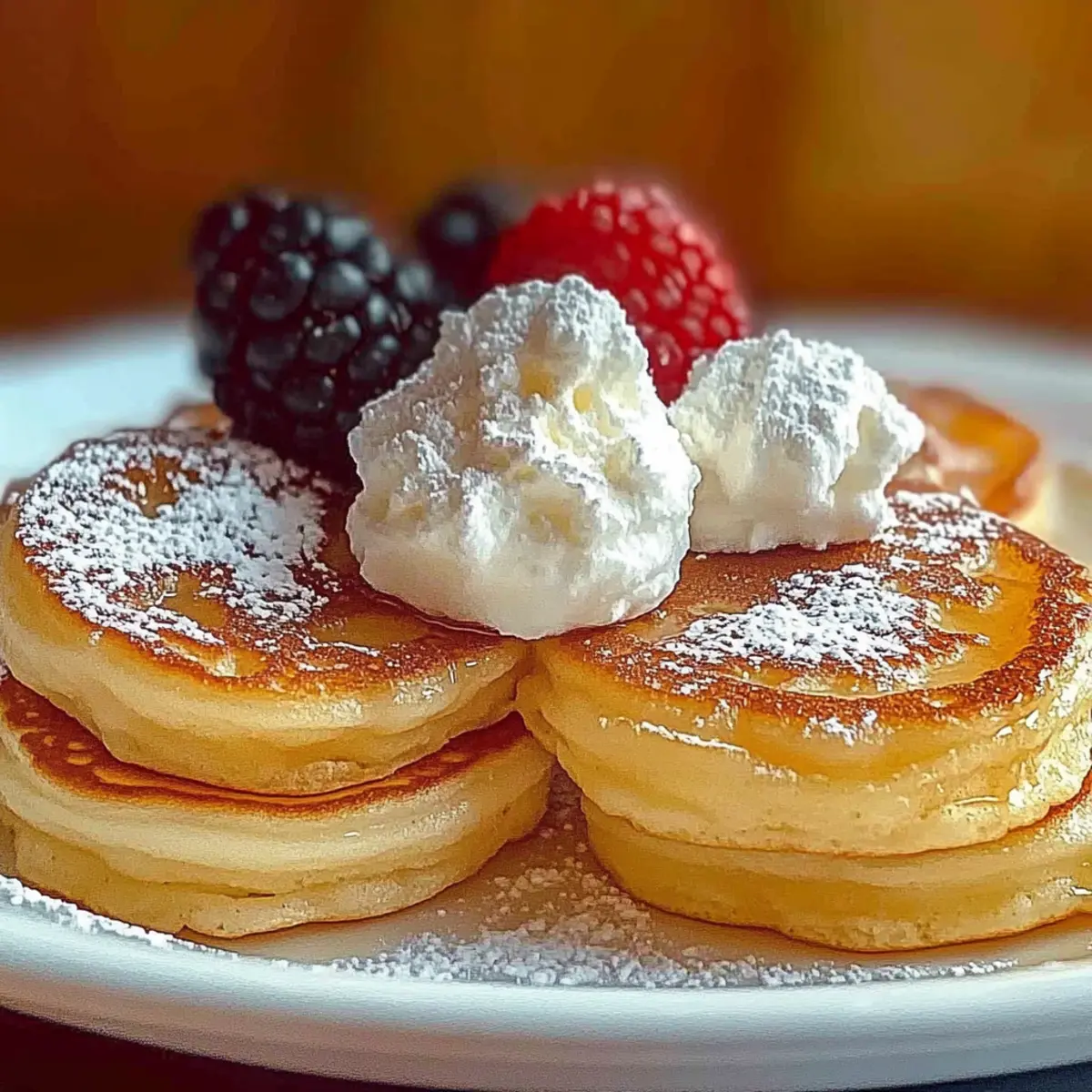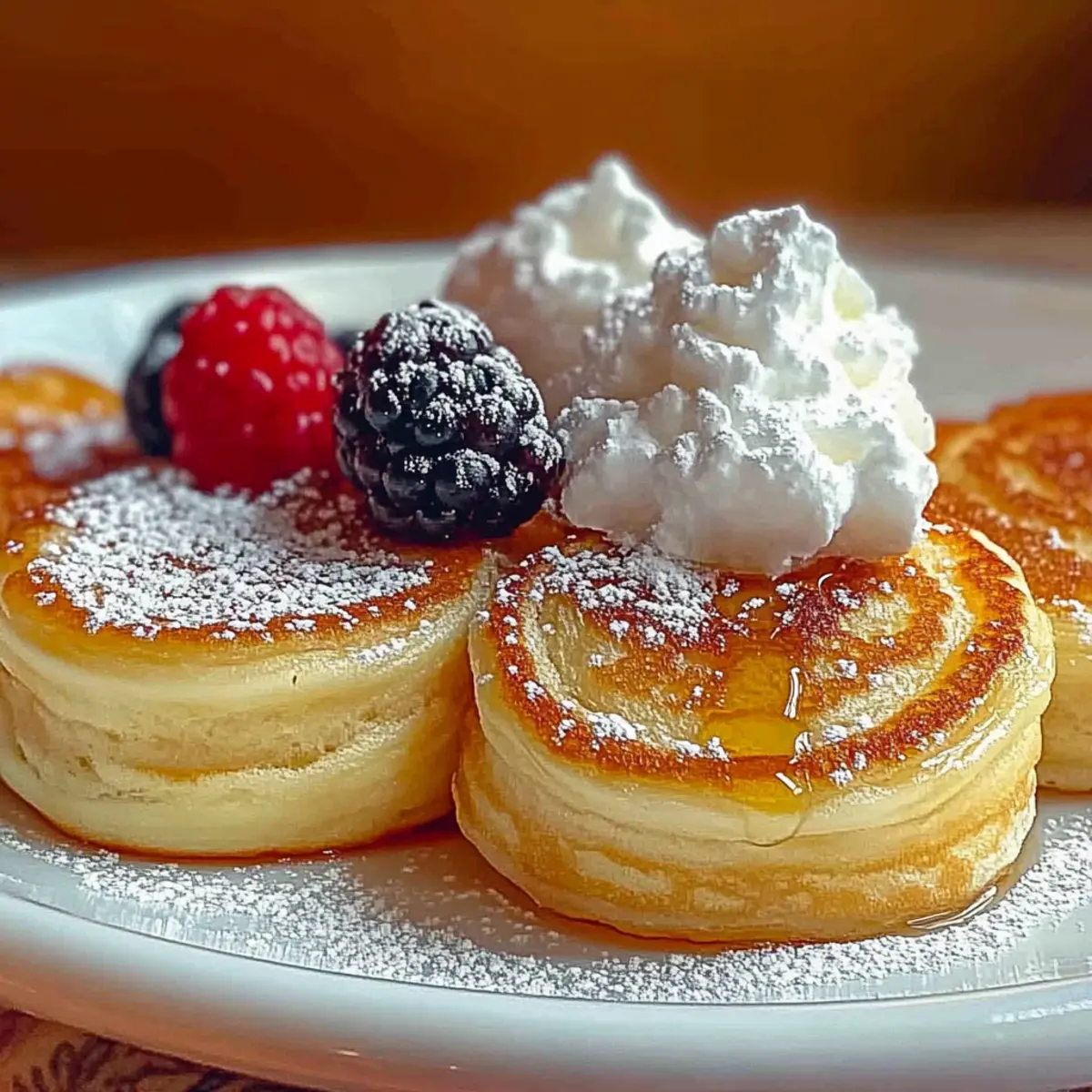 Whipped Cream: Fluffy, whipped cream adds a light, creamy finish, enveloping the pancakes in richness without overwhelming their delicate flavor.
