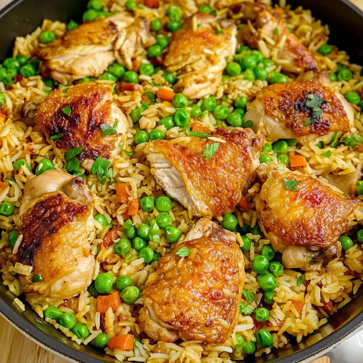 In the last 5 minutes of cooking, add 1 cup of frozen peas to the pot. Gently stir them in, allowing the peas to heat through and infuse their sweetness into the One-Pot Chicken and Rice. The vibrant green will make your dish look even more inviting!