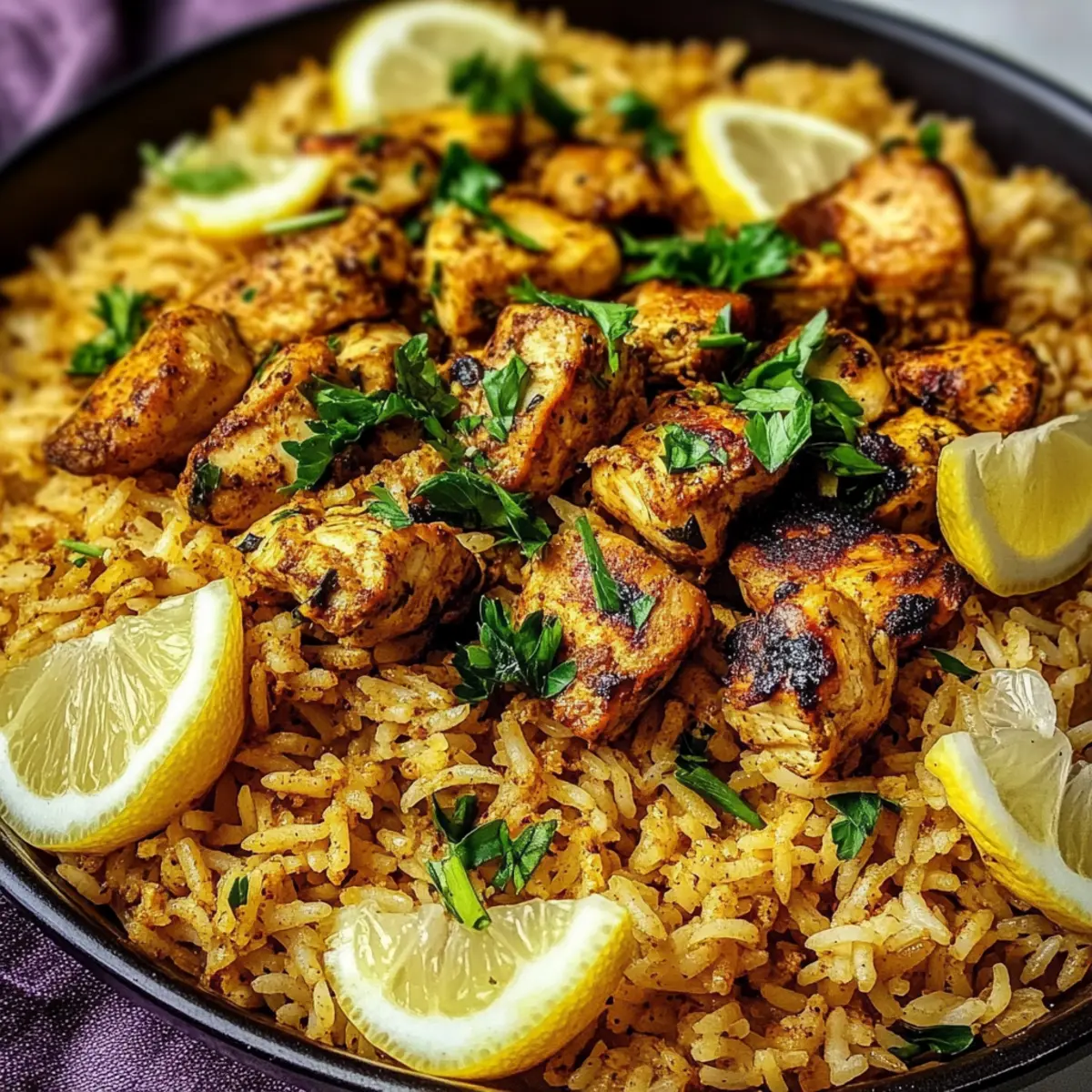 After resting, remove the lid and fluff the rice gently with a fork. Garnish with freshly chopped parsley for a burst of color and flavor, and serve with lemon wedges on the side for that zesty touch. Your mouthwatering One Pot Shawarma Chicken And Rice is ready to be enjoyed!