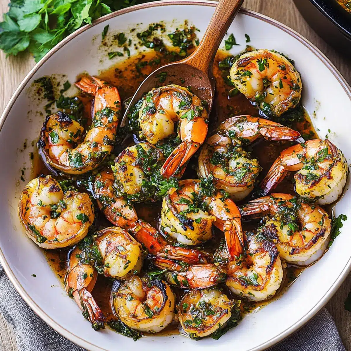 - Finish: Transfer shrimp to a serving dish and pour chimichurri sauce over. Toss gently to coat.