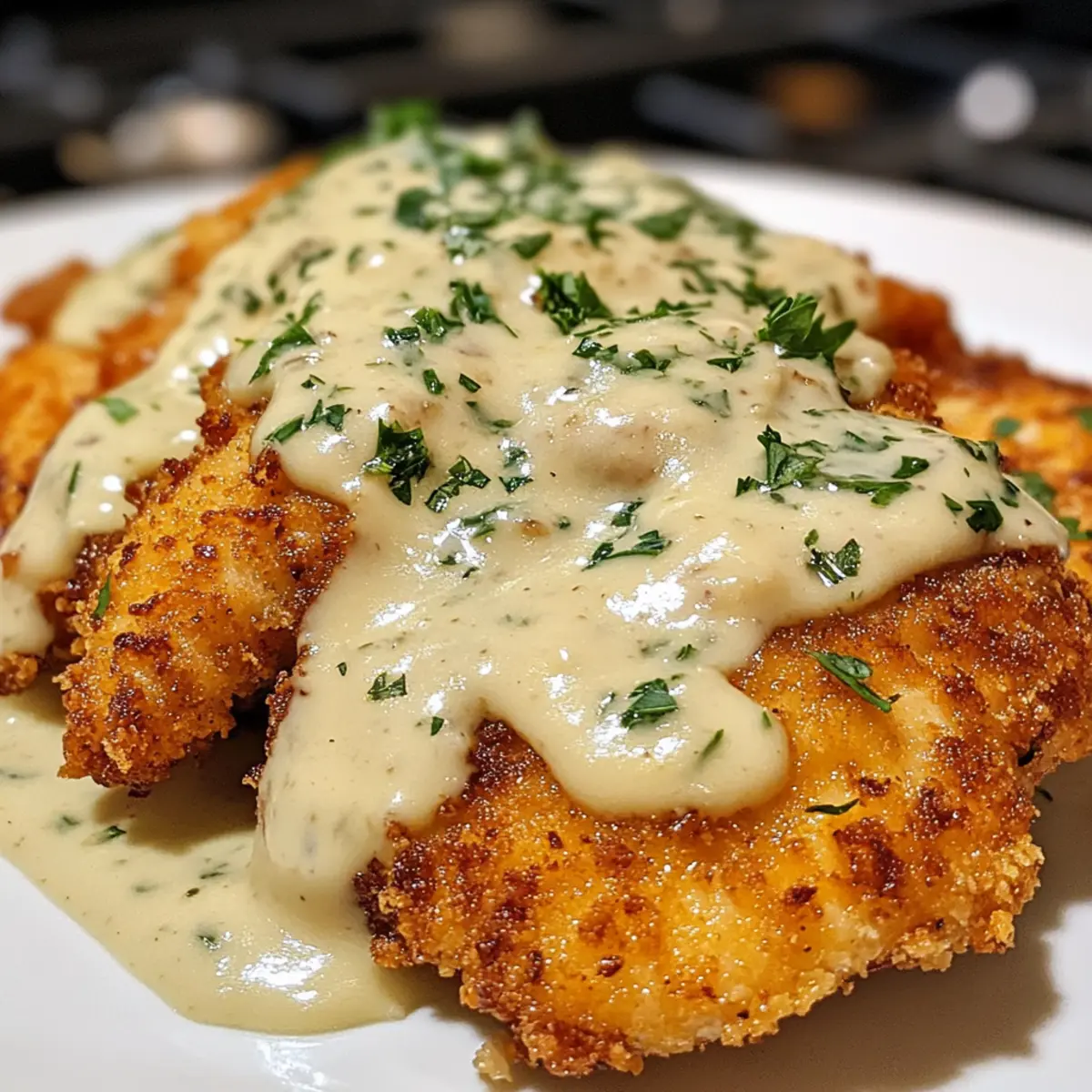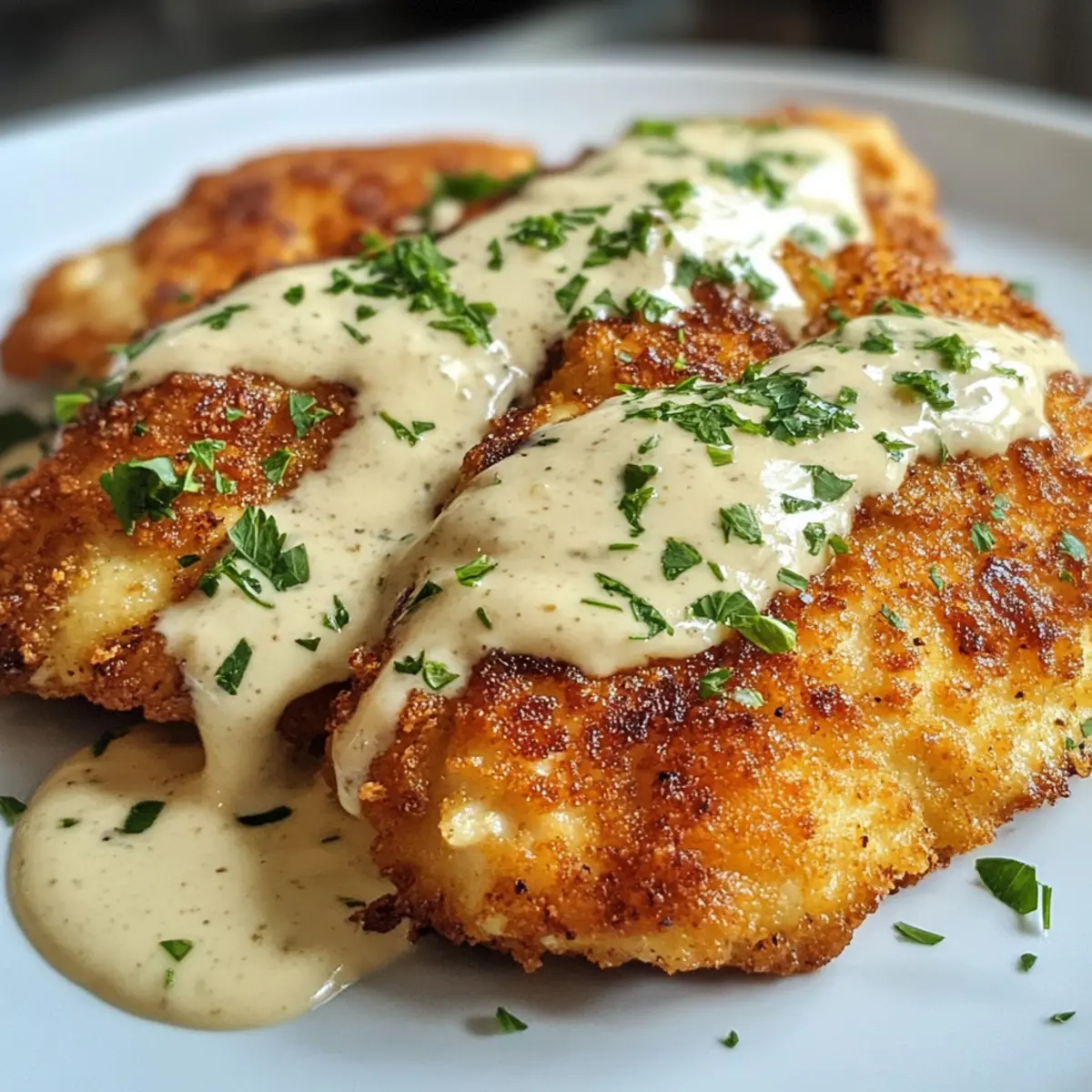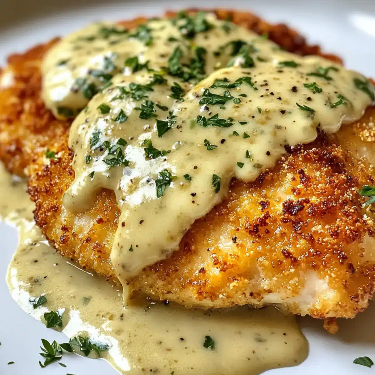 Return the crispy chicken cutlets to the skillet, spooning the rich garlic cream sauce generously over each piece. Allow them to warm up in the sauce for about 1–2 minutes. For a touch of freshness, garnish with chopped parsley or thyme before serving, adding a beautiful pop of color and flavor to your delicious dish.