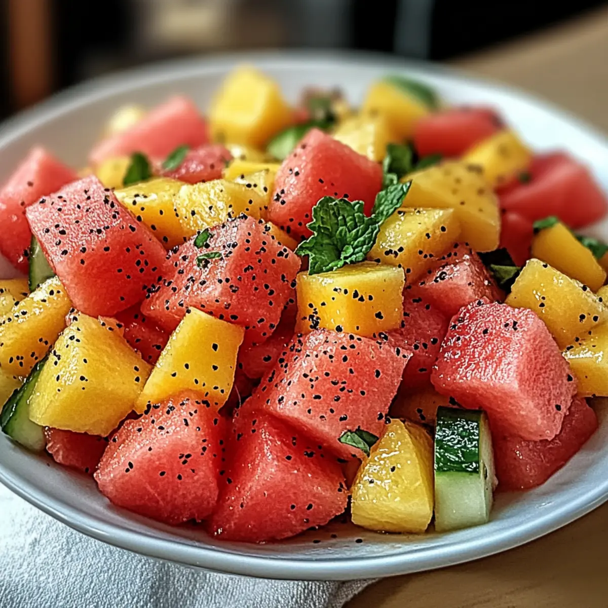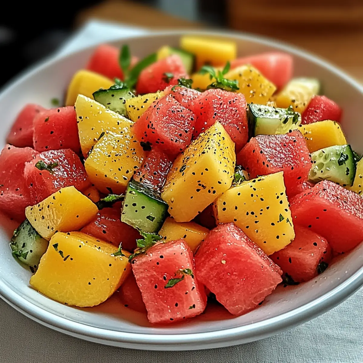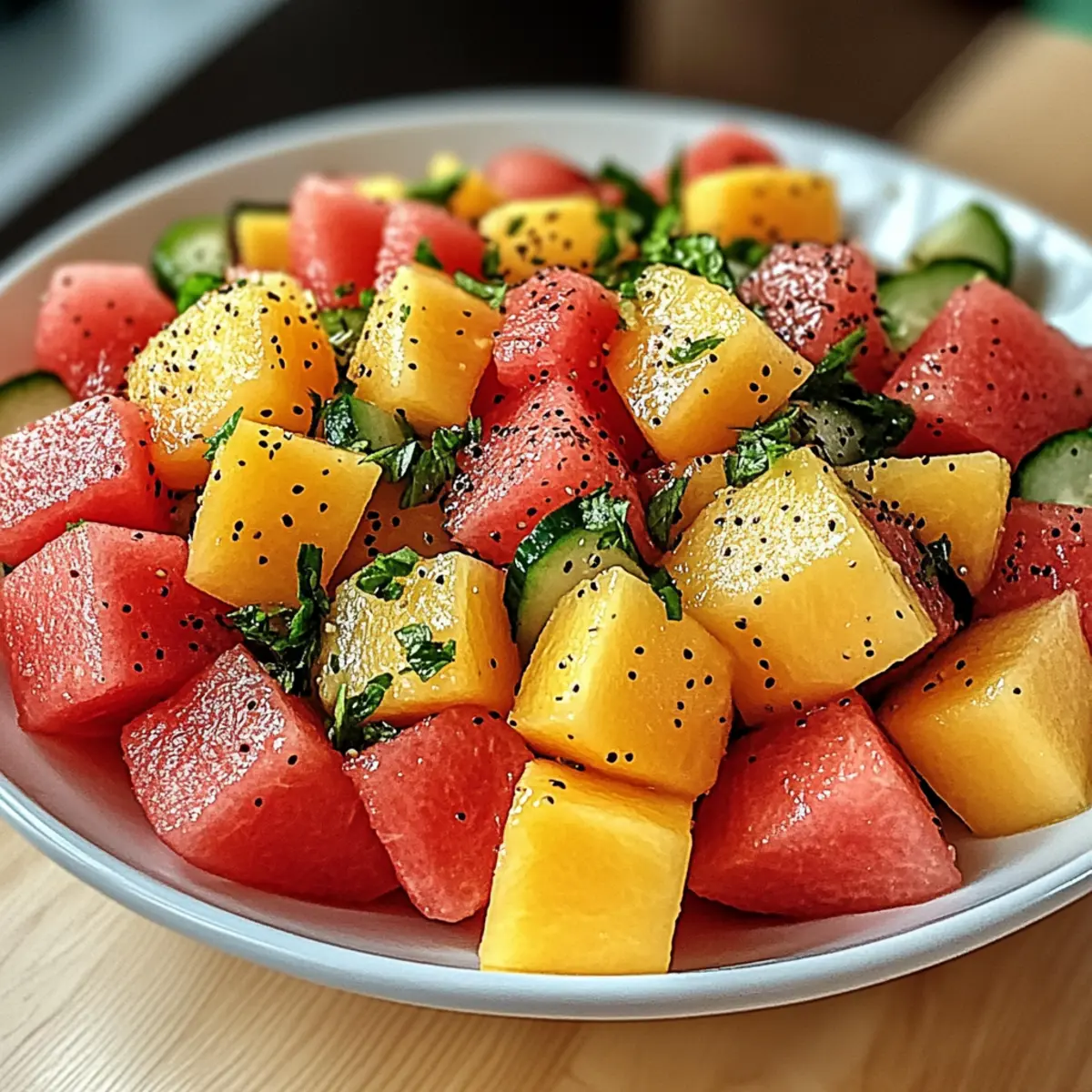Try Basil: Swap out the mint for fresh basil to infuse a sweet, aromatic twist, giving your salad an Italian flair. This substitution adds a refreshing edge and complements the fruit surprisingly well!
