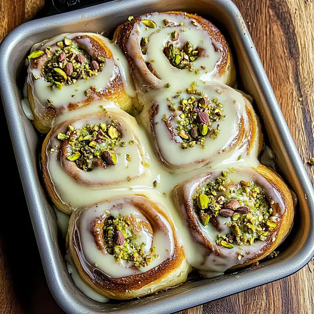 Reheating: To restore warmth and softness, microwave the rolls for about 15-20 seconds or warm in a preheated oven at 350°F for 5-7 minutes. Enjoy your Pistachio Cream Cinnamon Rolls at their best!