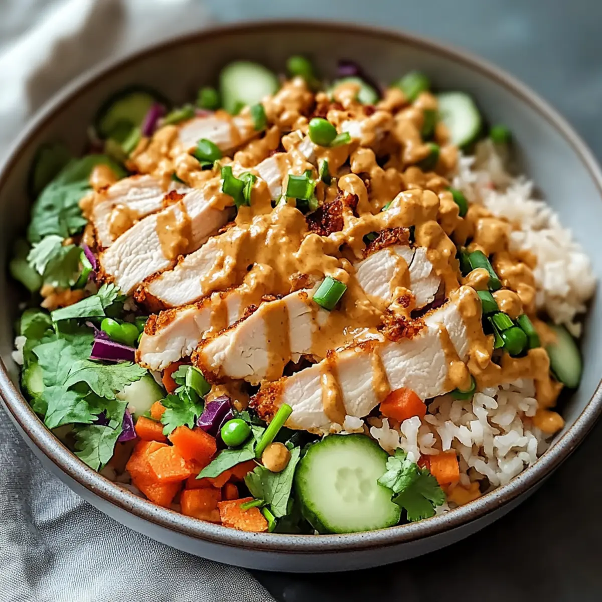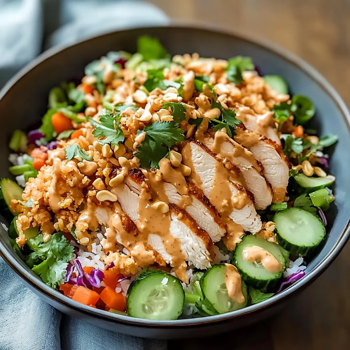 Bursting with Flavor: The creamy peanut dressing brings a rich, nutty taste that perfectly complements the freshness of the vegetables and the savory chicken.