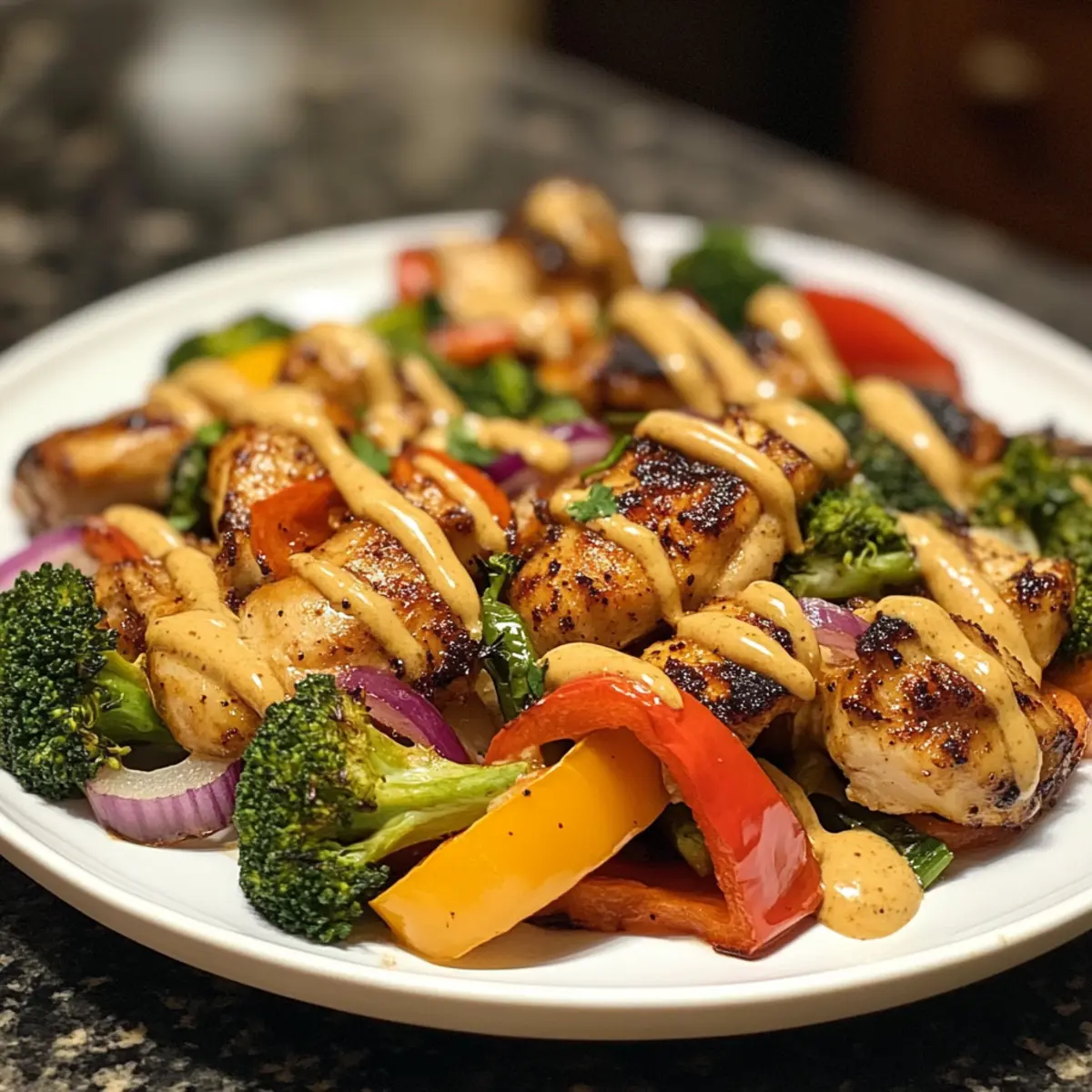 Vibrant Flavors: The marriage of marinated chicken and fresh vegetables brings a burst of color and flavor to your table.