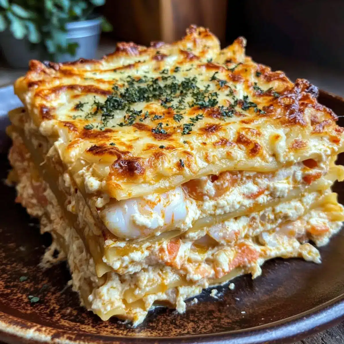 Heavenly Flavor: Each bite is bursting with succulent shrimp and savory crab, perfectly complemented by a creamy Alfredo sauce that envelops the layers in comfort.