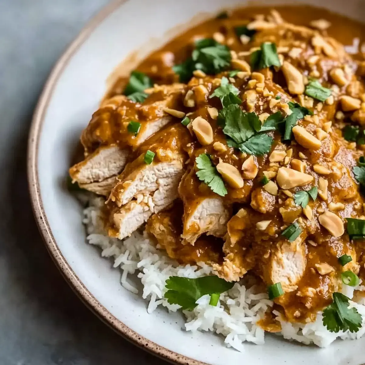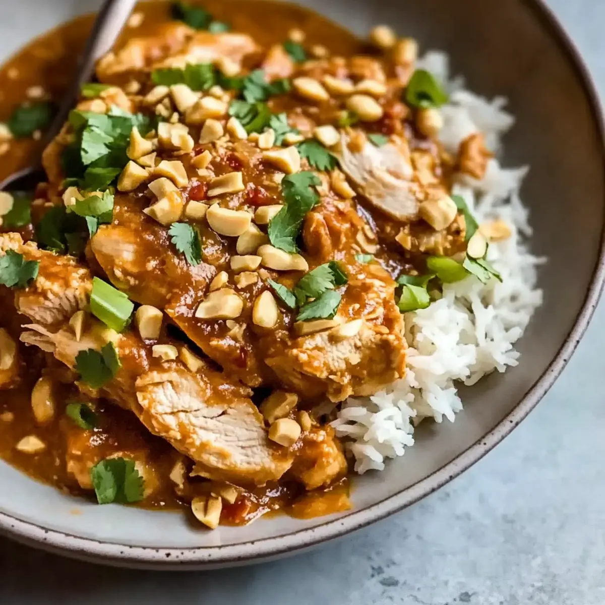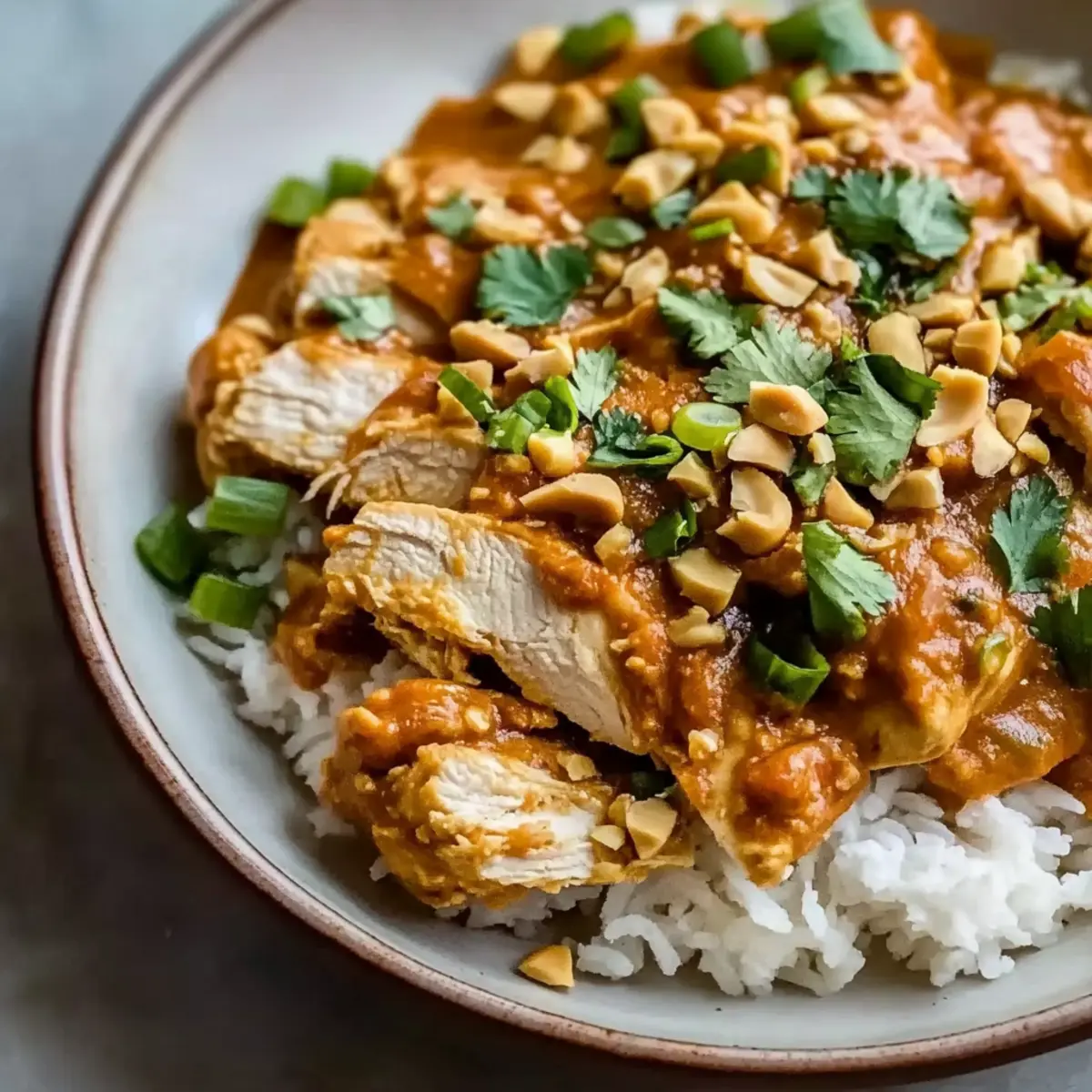 Comforting Flavors: The creamy peanut sauce envelops tender chicken, creating a warm, satisfying meal perfect for cozy nights.