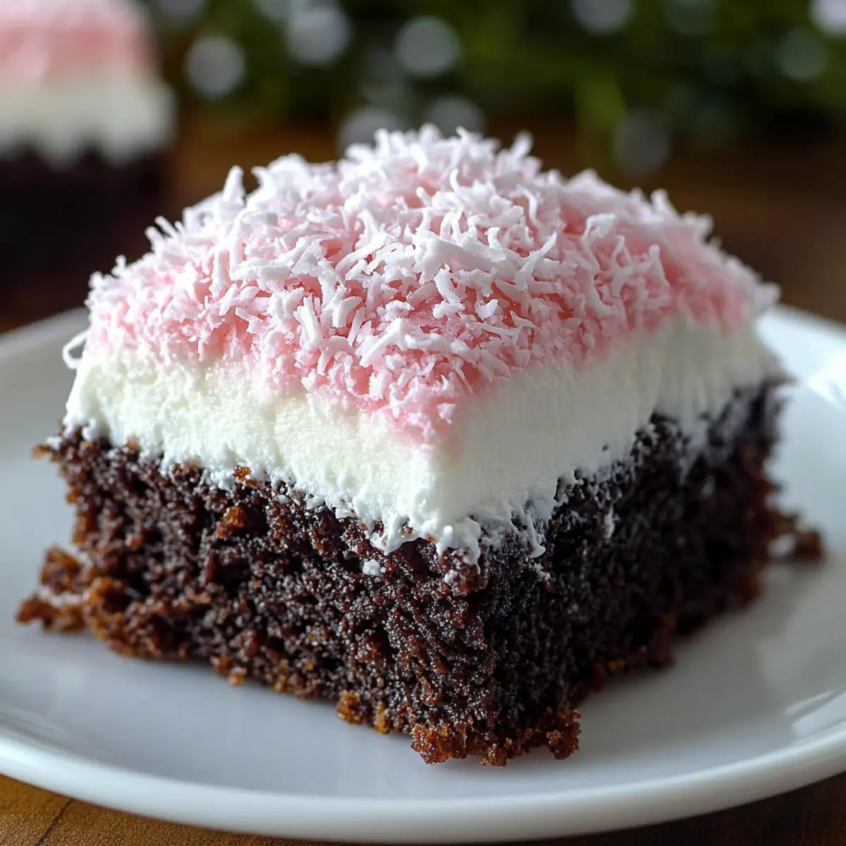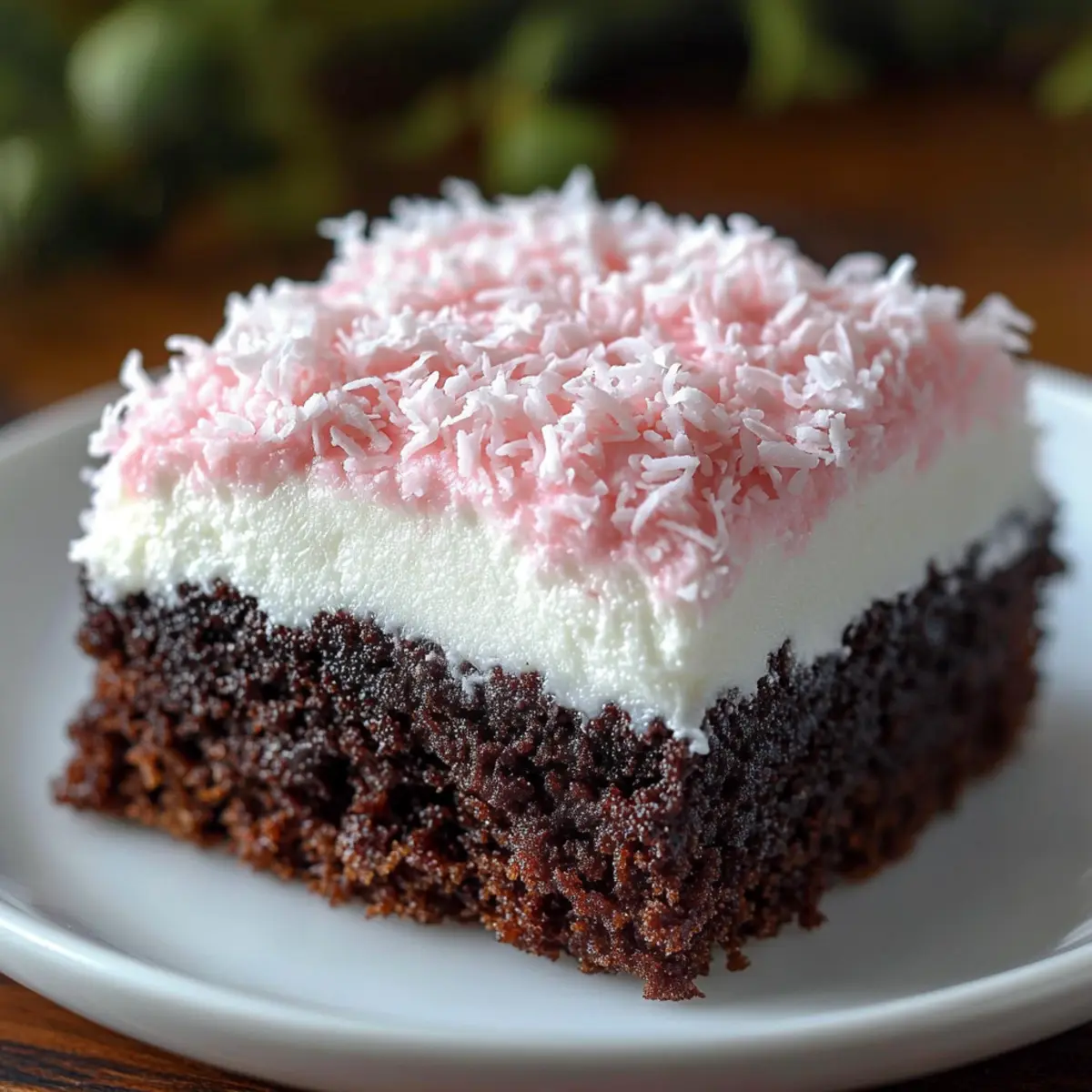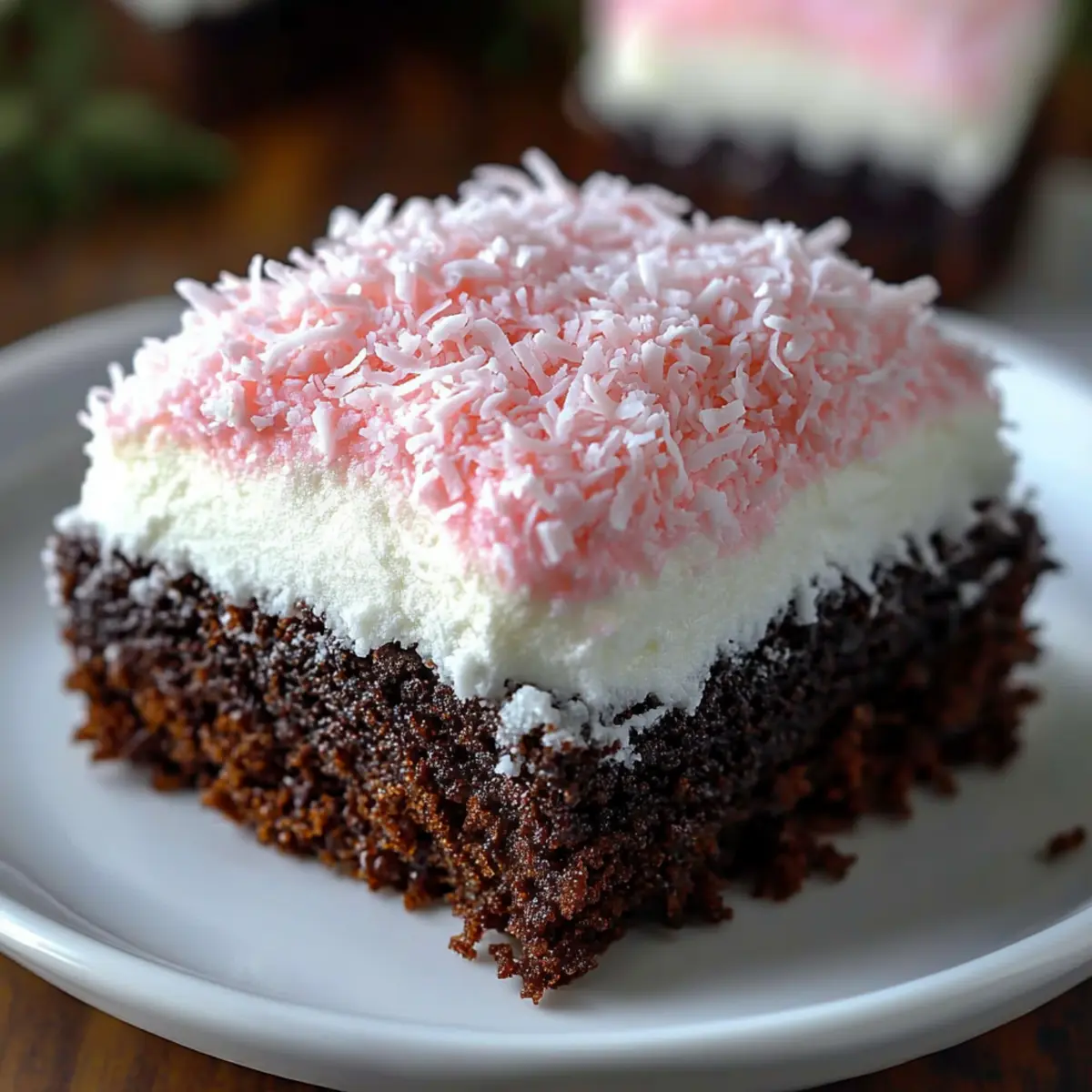 - Spread the marshmallow mixture over the cooled brownies, then sprinkle shredded coconut on top.