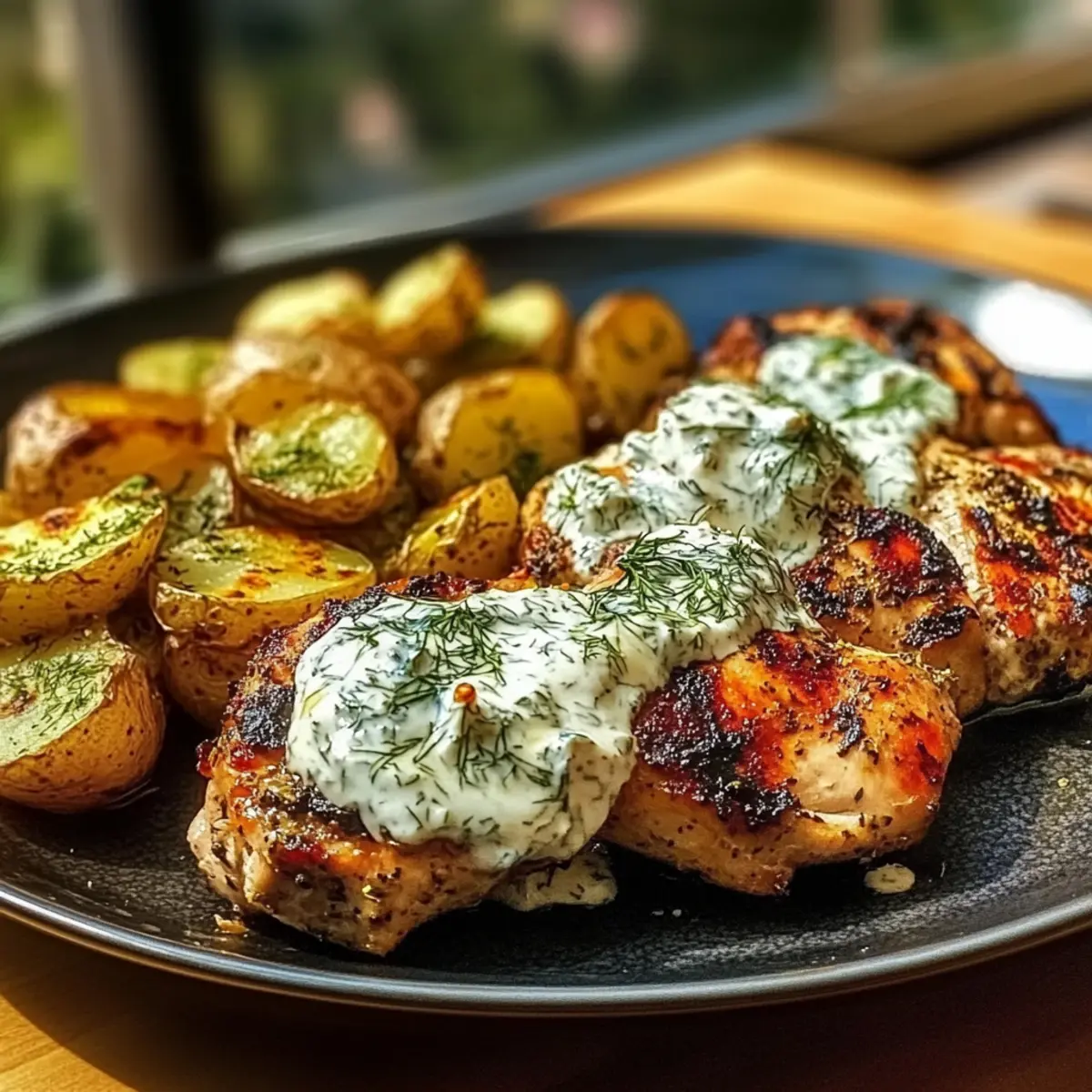 To serve, plate your sliced Spicy Yogurt Marinated Chicken alongside those crispy baby potatoes. Drizzle generously with the dill feta cream, and garnish with additional dill or lemon zest for a pop of color. This dish is sure to impress, blending vibrant flavors and satisfying textures.