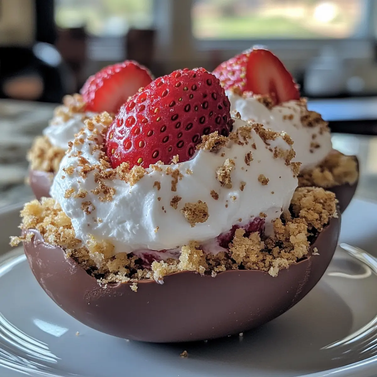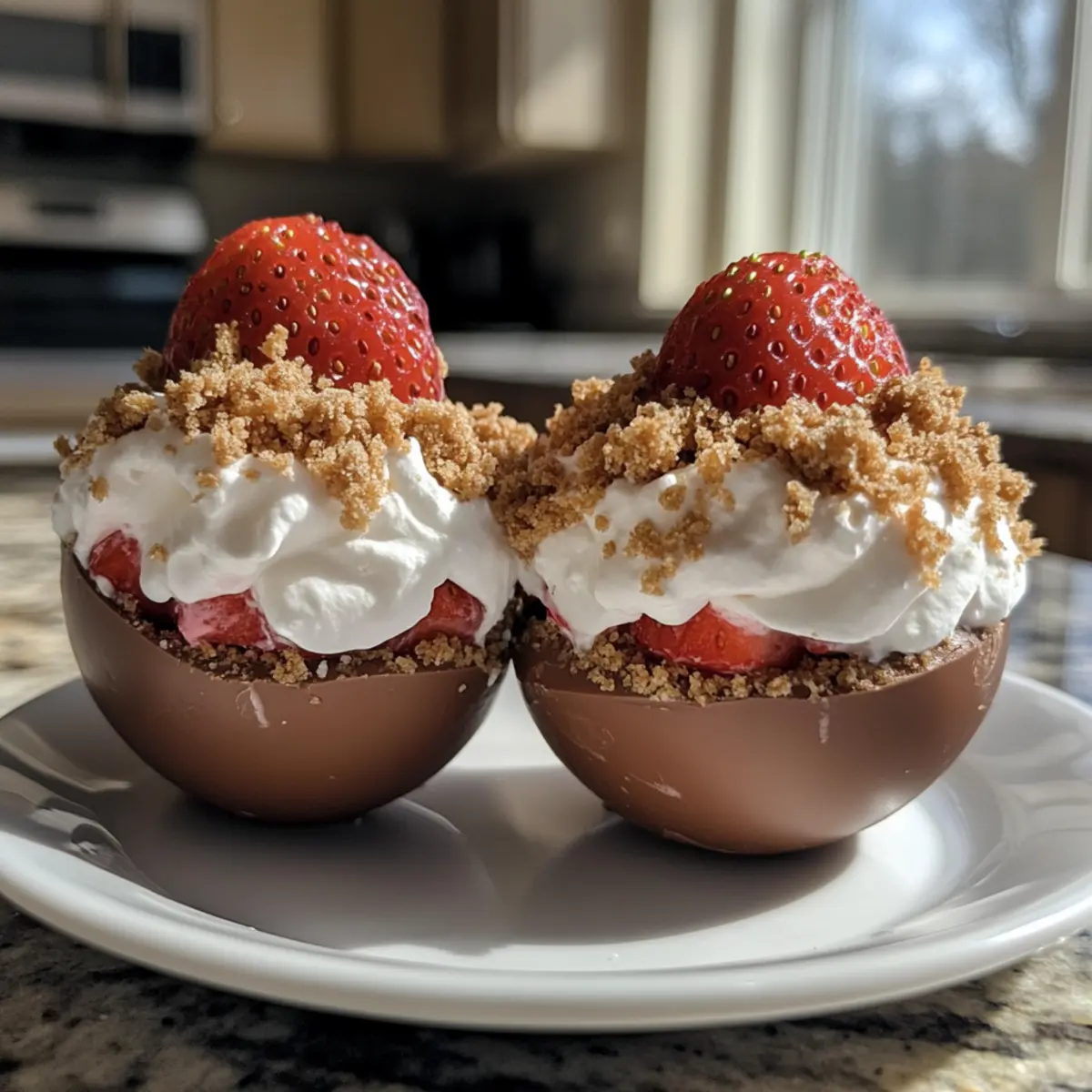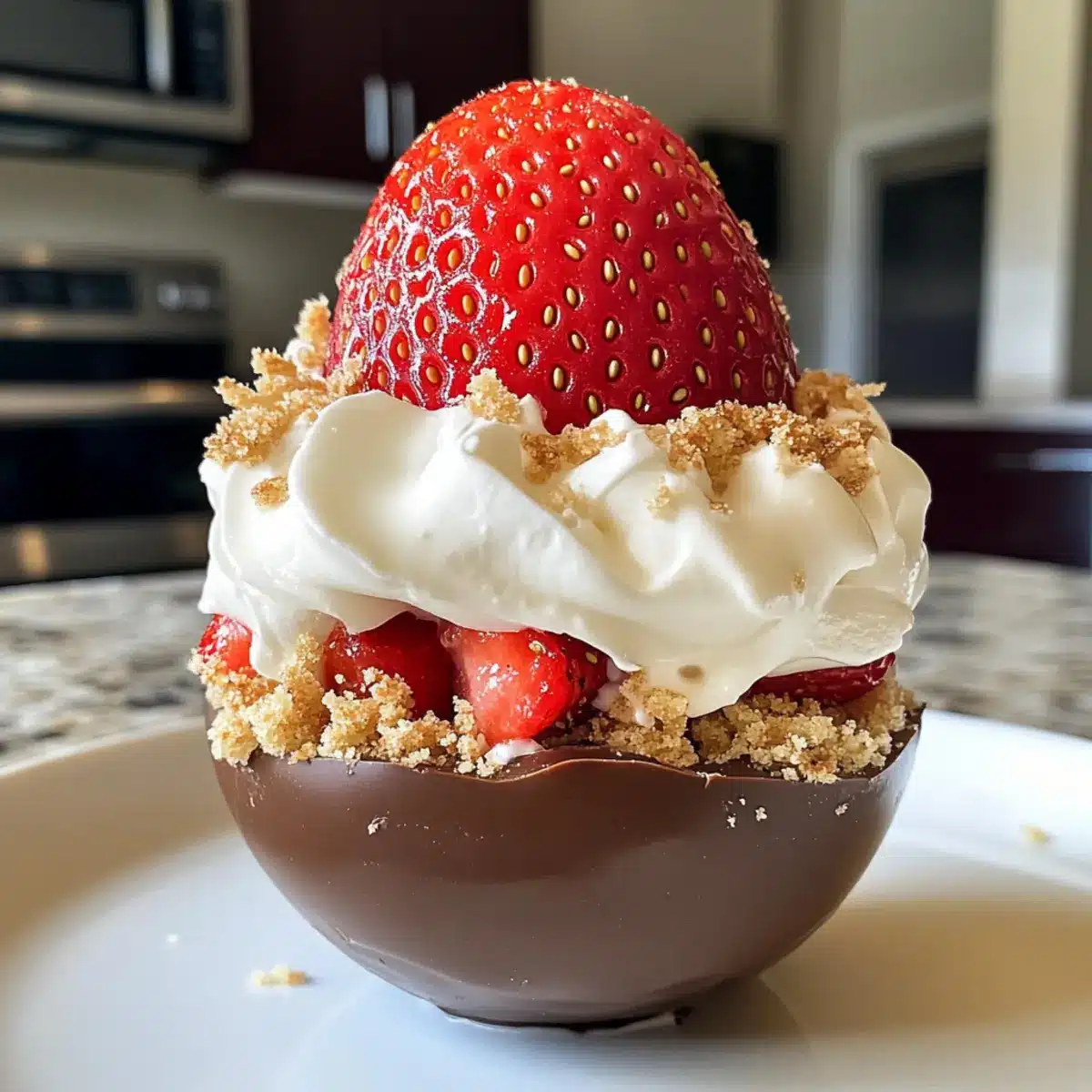 - Once chilled and firm, carefully unmold each Strawberry Shortcake Easter Egg Bomb. Garnish with additional crushed shortcake crumbs if desired.