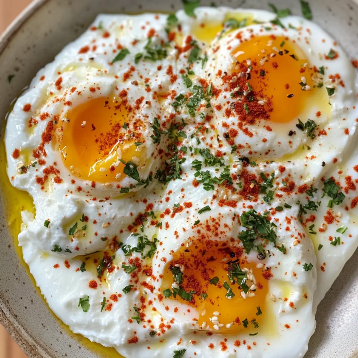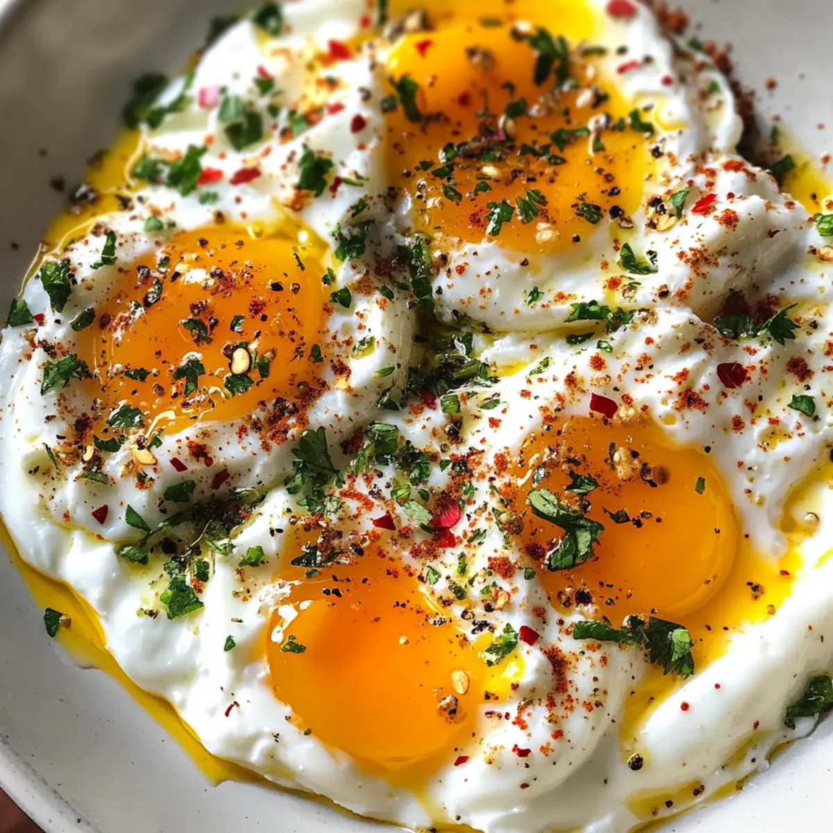 Crunchy Element: Consider adding toasted nuts, like pine nuts or almonds, as a garnish. This delightful crunch contrasts beautifully with the creamy eggs and yogurt, creating an appealing texture in every bite.